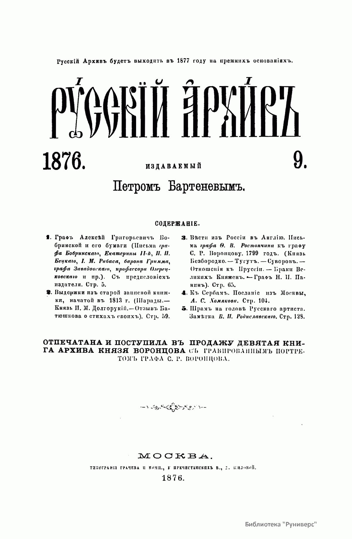 Русскiй архивъ. Историко-литературный сборникъ. 1876. Выпуски 9-12