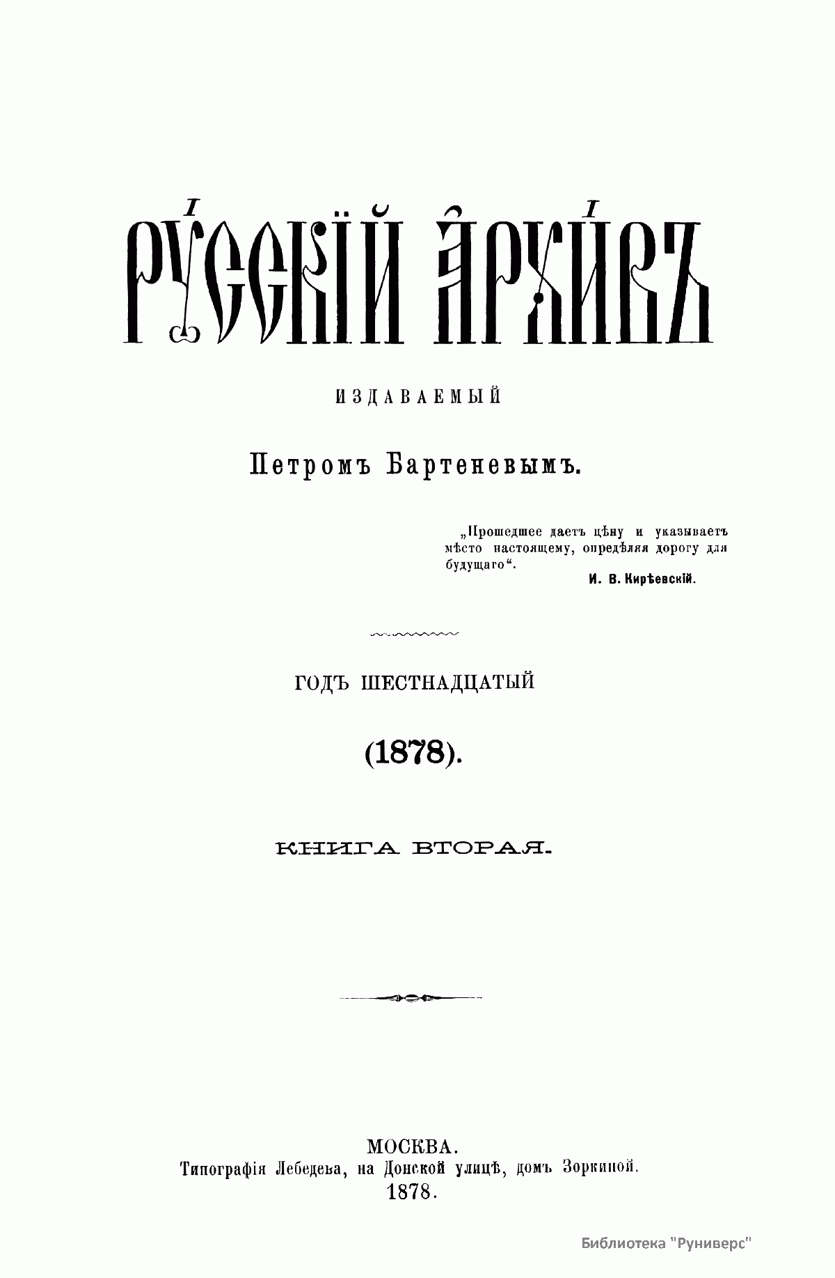 Русскiй архивъ. Историко-литературный сборникъ. 1878. Выпуски 5-8