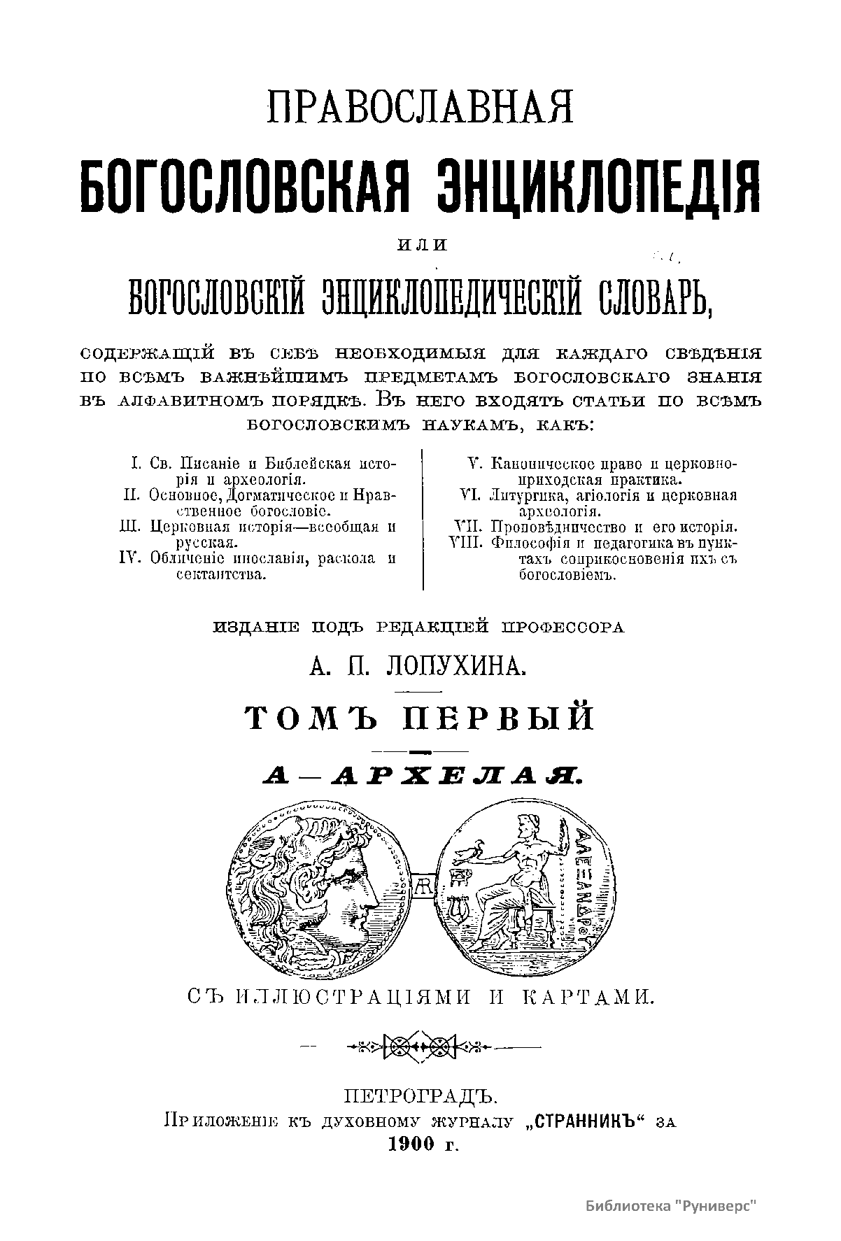 Настоящее издание – первая в России настольная справочная книга по всем предметам богословского и философского знания в алфавитном порядке. Содержит статьи по таким богословским наукам, как: Св. Писание и Библейская история и археология; Основное, Догматическое и Нравственное богословие; Церковная история – всеобщая и русская; Обличение инославия, раскола и сектантства; Каноническое право и церковно-приходская практика; Литургика, агиология и церковная археология; Проповедничество и его история; Философия и педагогика в пунктах соприкосновения их с православием.