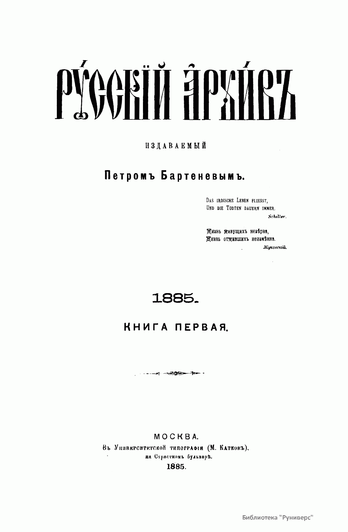 Русскiй архивъ. Историко-литературный сборникъ. 1885. Выпуски 1-4