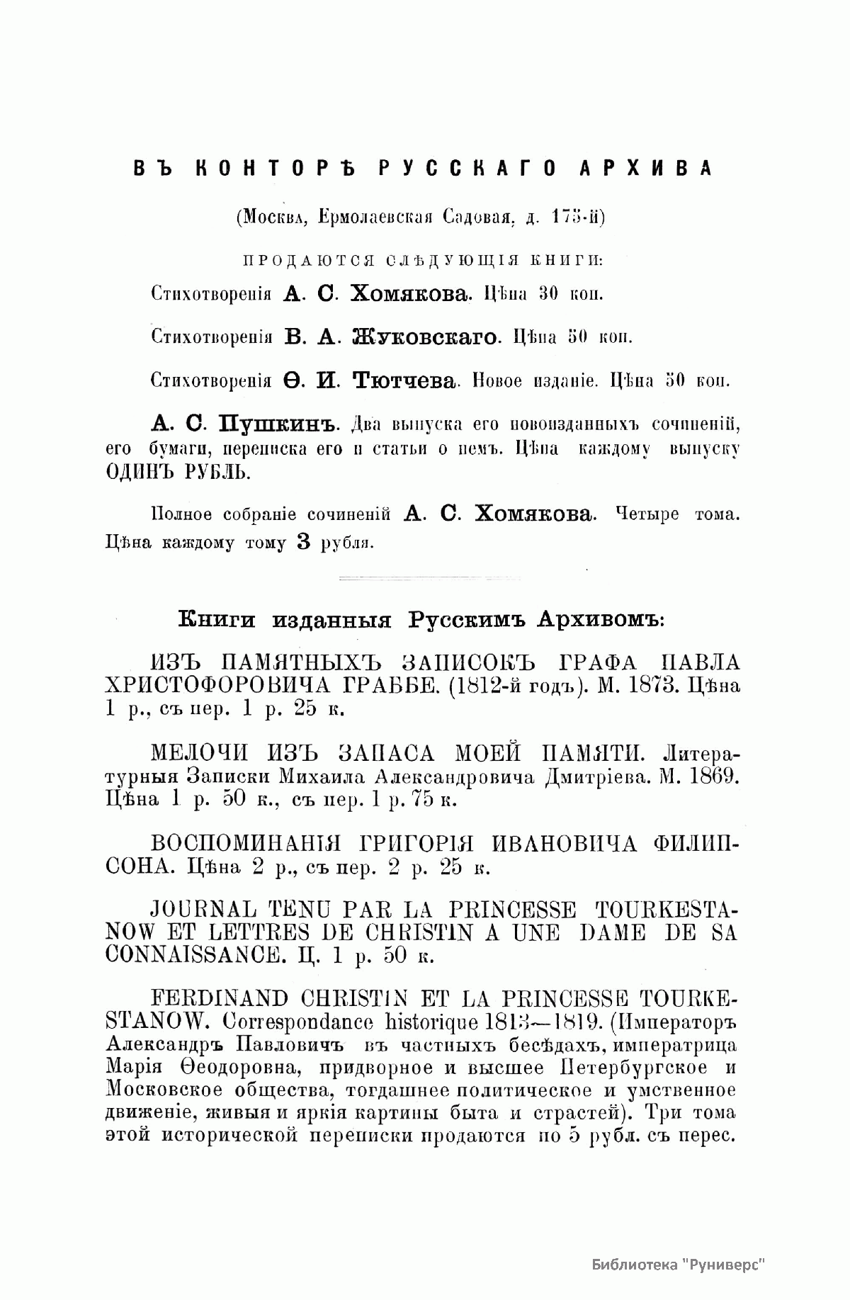 Русский архив. Историко-литературный сборник. 1886. Выпуски 8-12