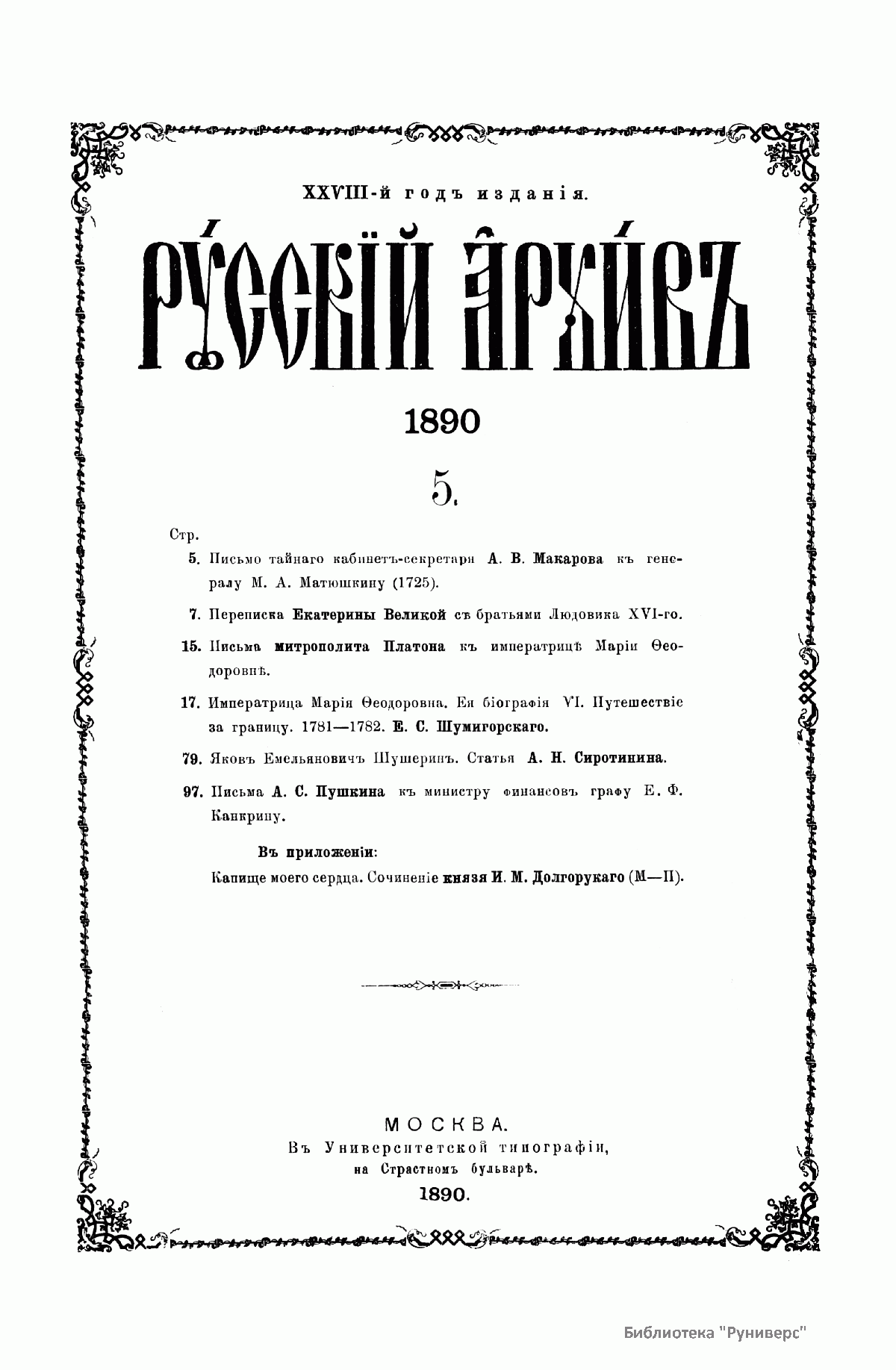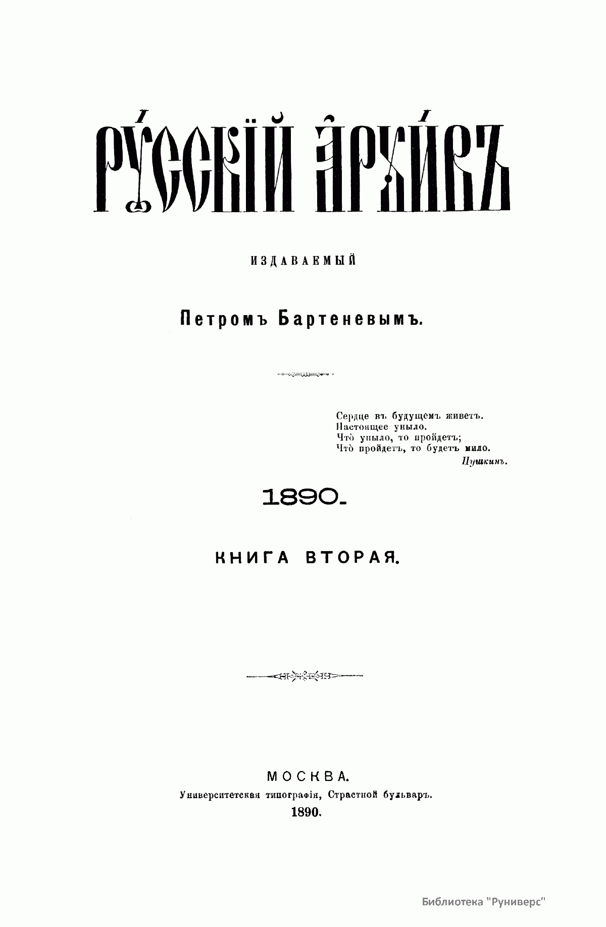 Русскiй архивъ. Историко-литературный сборникъ. 1890. Выпуски 5-8