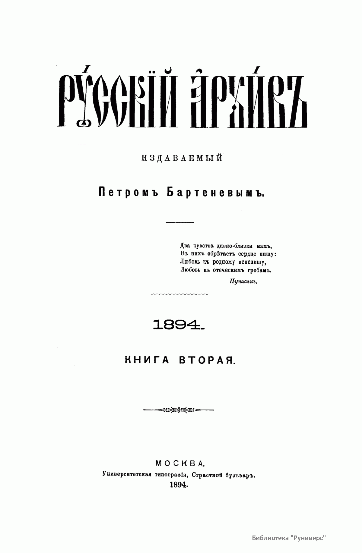 Русскiй архивъ. Историко-литературный сборникъ. 1894. Выпуски 5-8