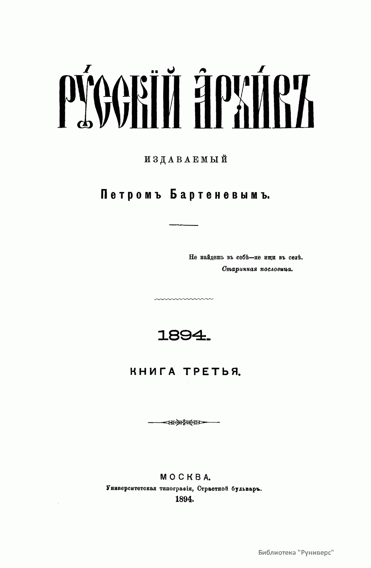 Русский архив. Историко-литературный сборник. 1894. Выпуски 9-12
