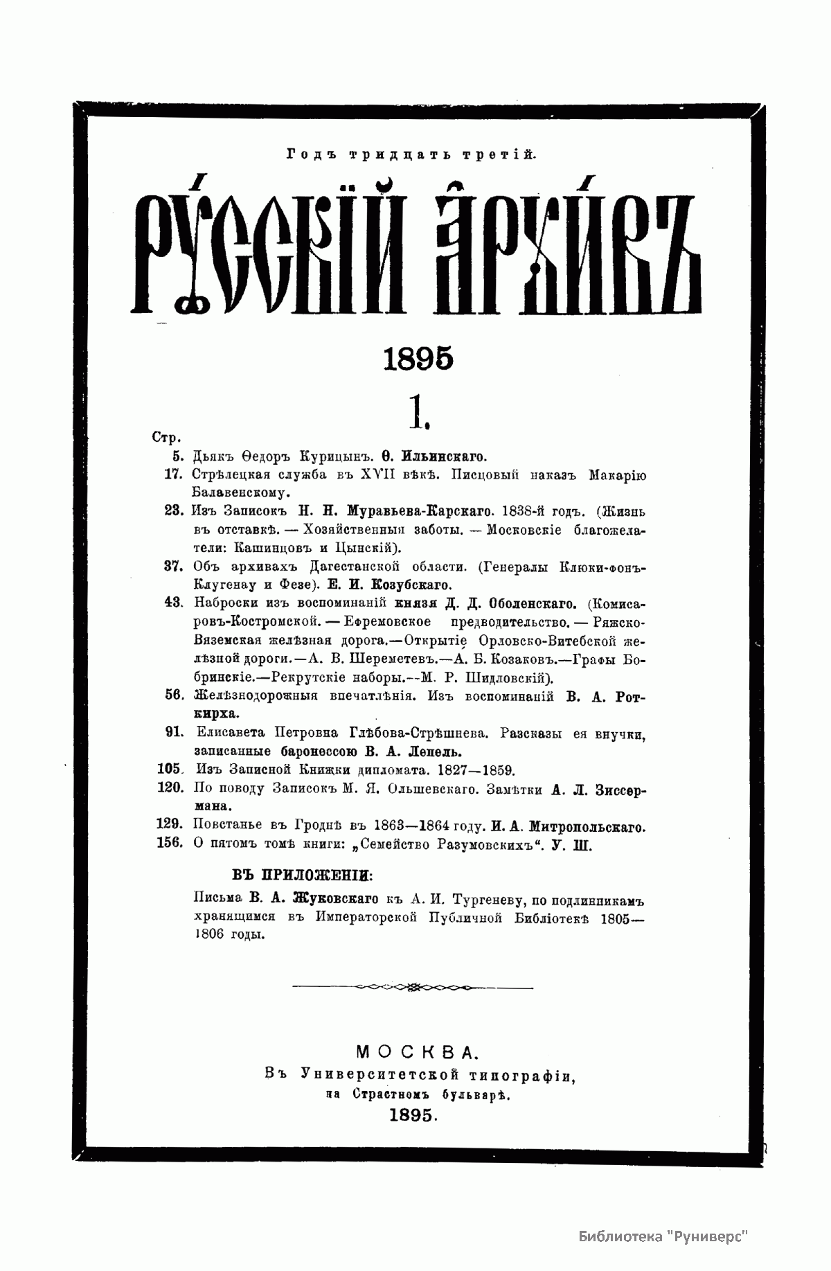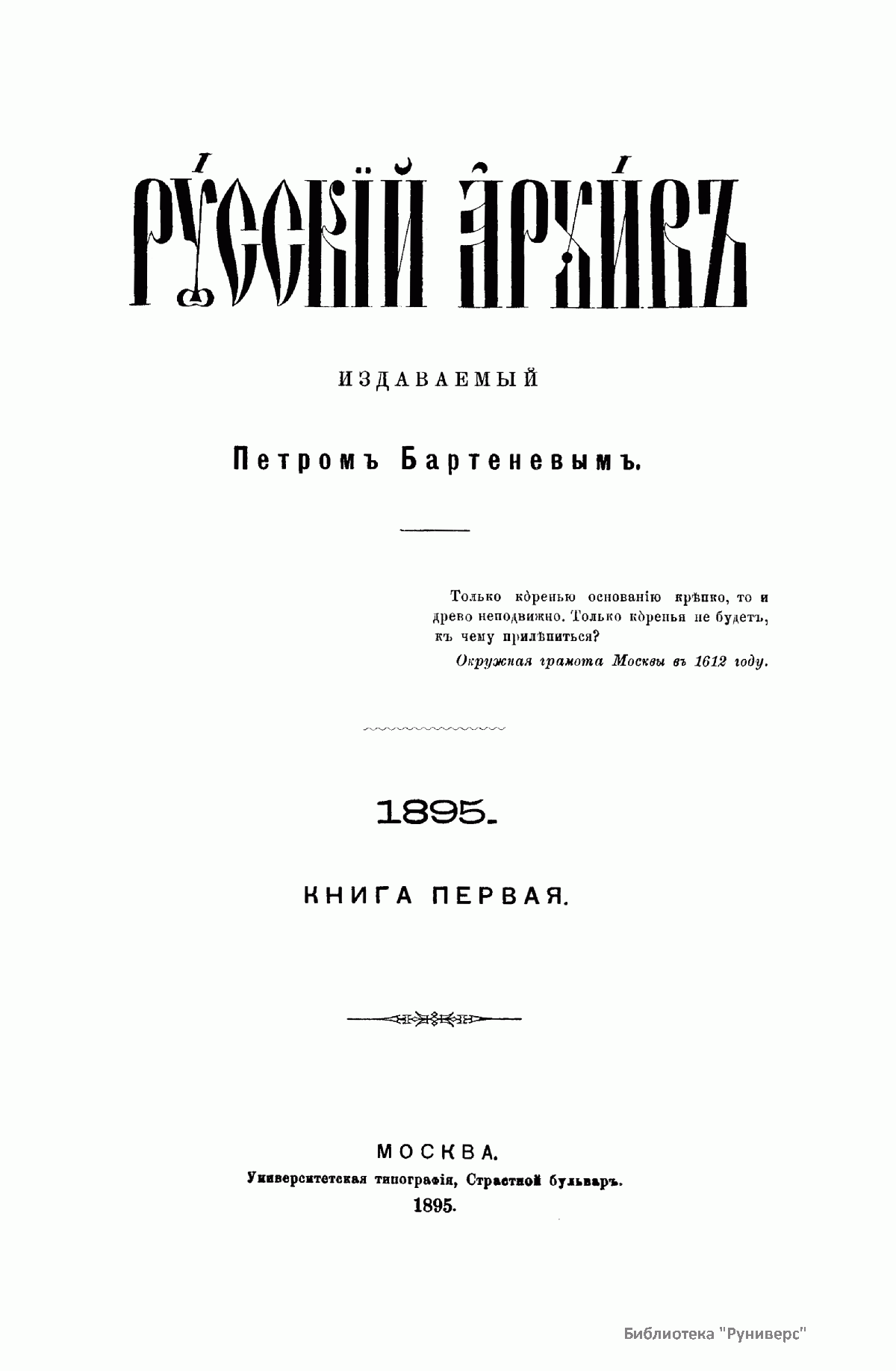Русский архив. Историко-литературный сборник. 1895. Выпуски 1-4