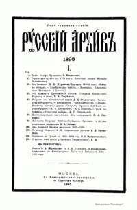 «Русский архив» — ежемесячный историко-литературный журнал, издававшийся в Москве с 1863 по 1917 год. Создателем и продолжительные годы редактором журнала был П. И. Бартенев – историк, археограф, библиограф. Этот журнал называли «живой картиной былого», поскольку он содержал преимущественно публикации неизданных мемуарных, эпистолярных, литературно-художественных и ведомственных документальных материалов, освещавших культурную и политическую историю России в XVIII и XIX вв. По числу опубликованных источников «Русский архив» стоит на первом месте среди русских исторических журналов.