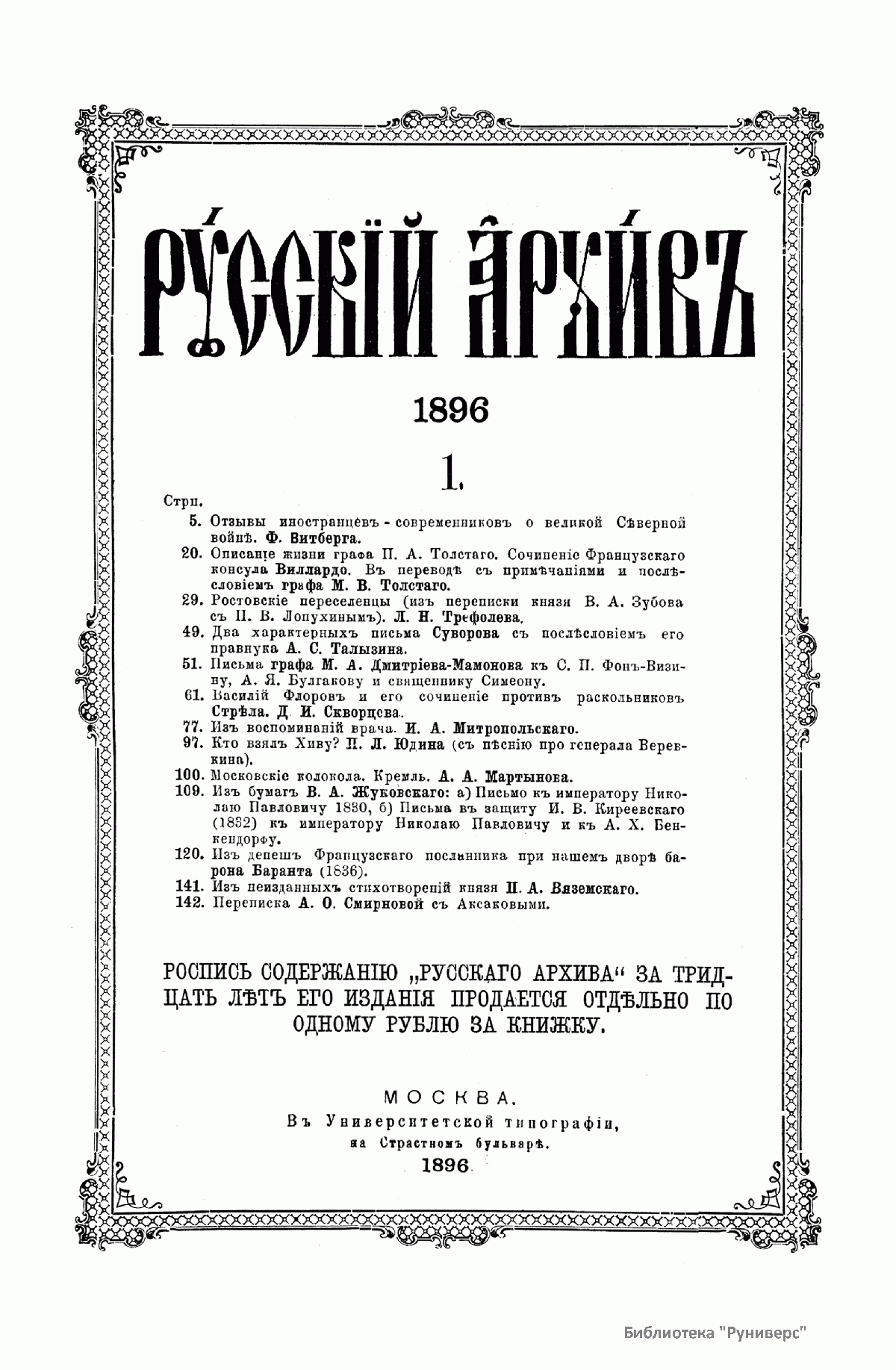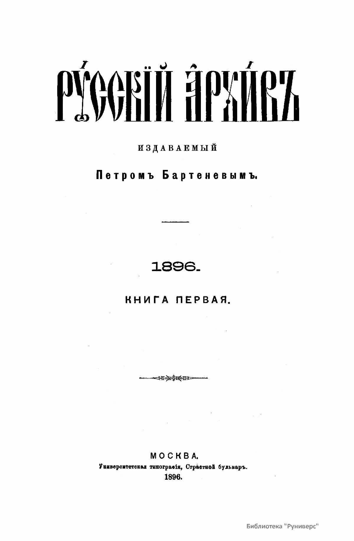 Русскiй архивъ. Историко-литературный сборникъ. 1896. Выпуски 1-4