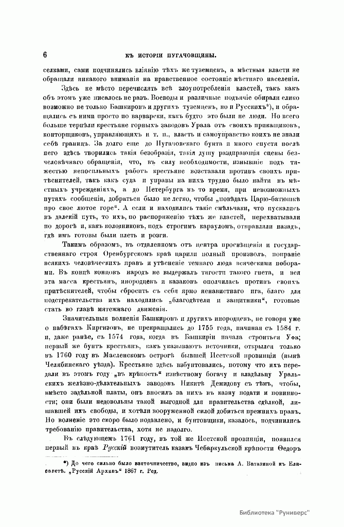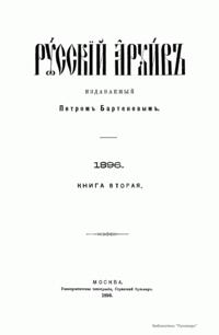 «Русский архив» — ежемесячный историко-литературный журнал, издававшийся в Москве с 1863 по 1917 год. Создателем и продолжительные годы редактором журнала был П. И. Бартенев – историк, археограф, библиограф. Этот журнал называли «живой картиной былого», поскольку он содержал преимущественно публикации неизданных мемуарных, эпистолярных, литературно-художественных и ведомственных документальных материалов, освещавших культурную и политическую историю России в XVIII и XIX вв. По числу опубликованных источников «Русский архив» стоит на первом месте среди русских исторических журналов.