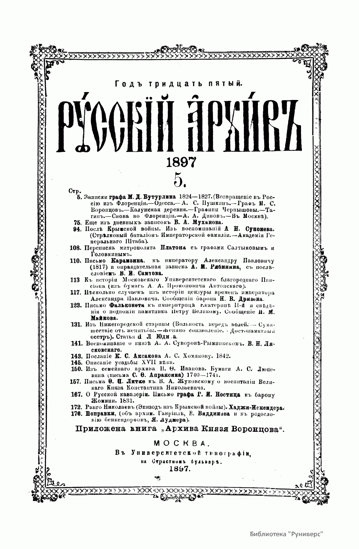 Русскiй архивъ. Историко-литературный сборникъ. 1897. Выпуски 5-8