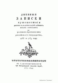 Дневныя записки путешествiя доктора и Академiи Наукъ адъюнкта Ивана Лепехина по разнымъ провинцiямъ Россiйскаго государства