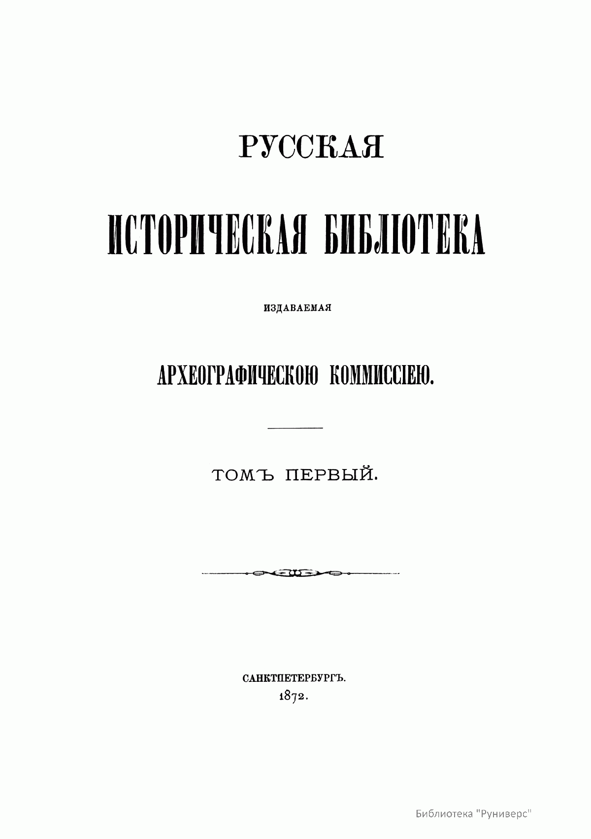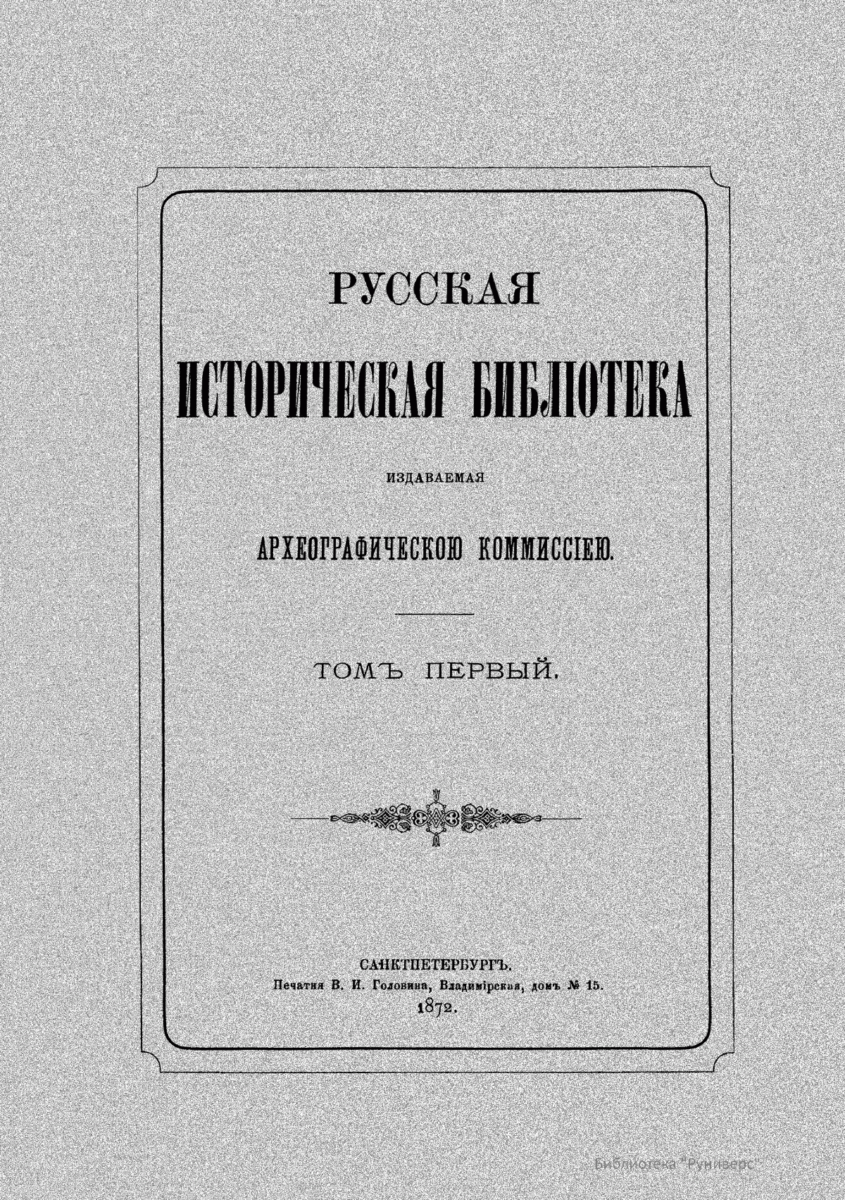 Русская историческая библiотека, издаваемая Археографическою комиссiею