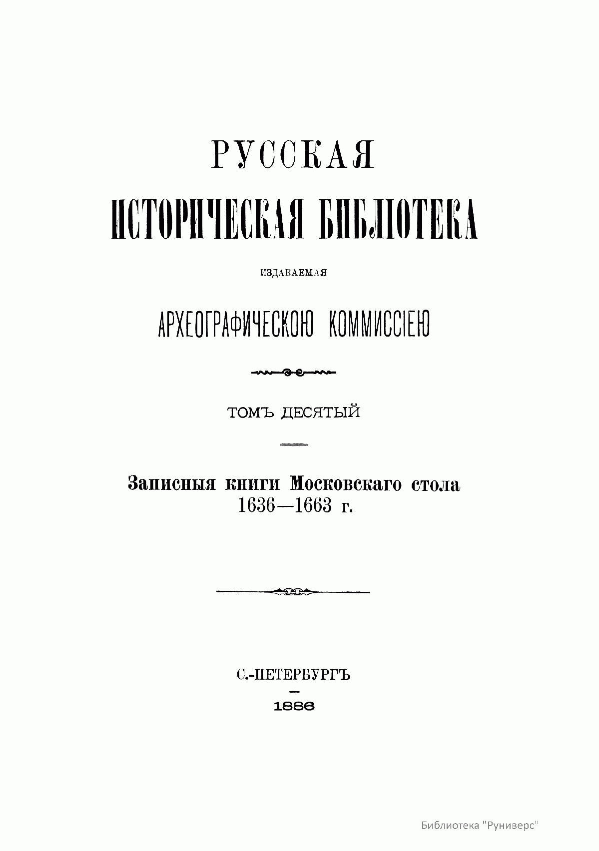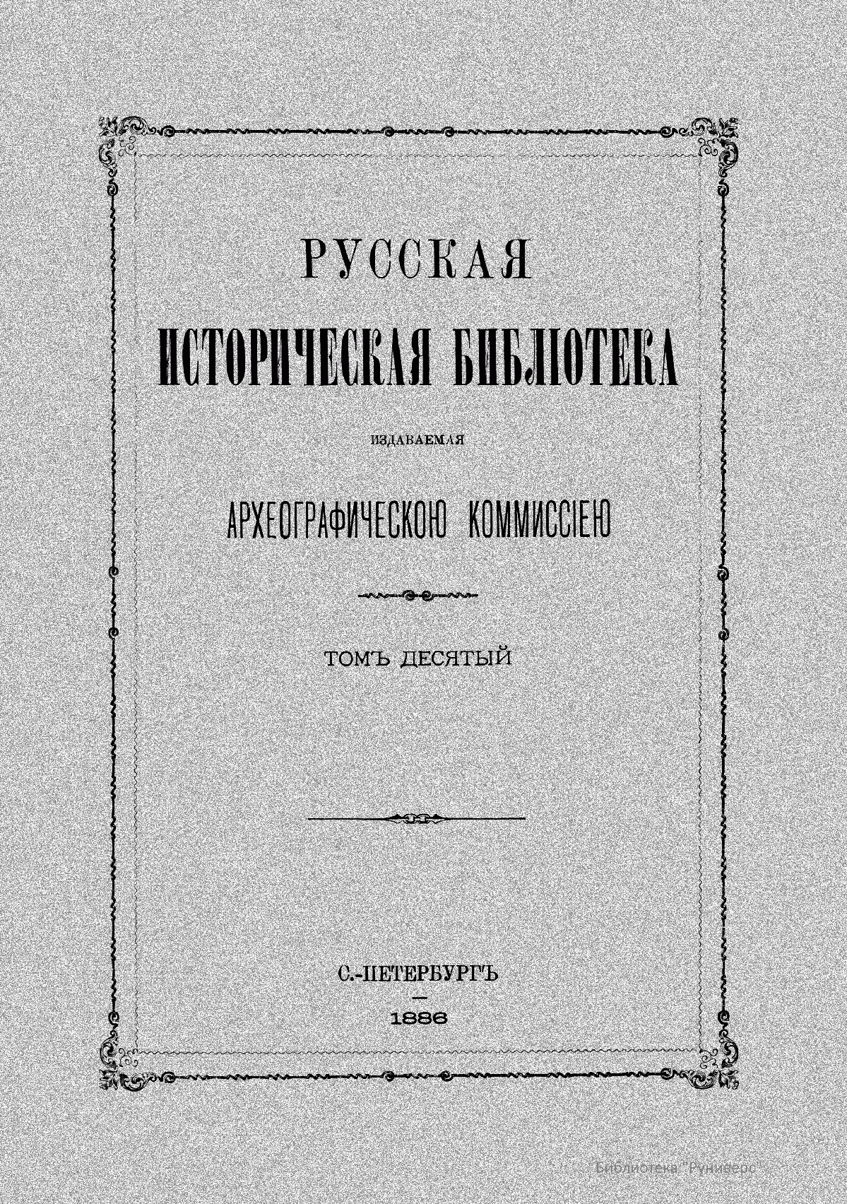 Русская историческая библiотека, издаваемая Археографическою комиссiею. Томъ десятый