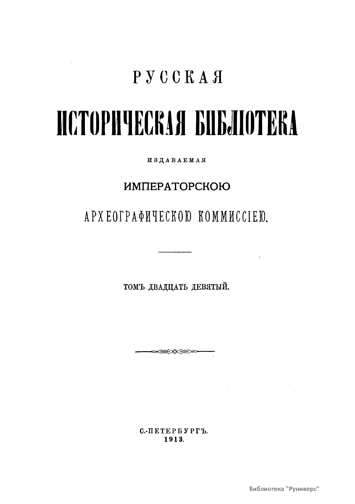 Русская историческая библiотека, издаваемая Археографическою комиссiею. Томъ двадцать девятый