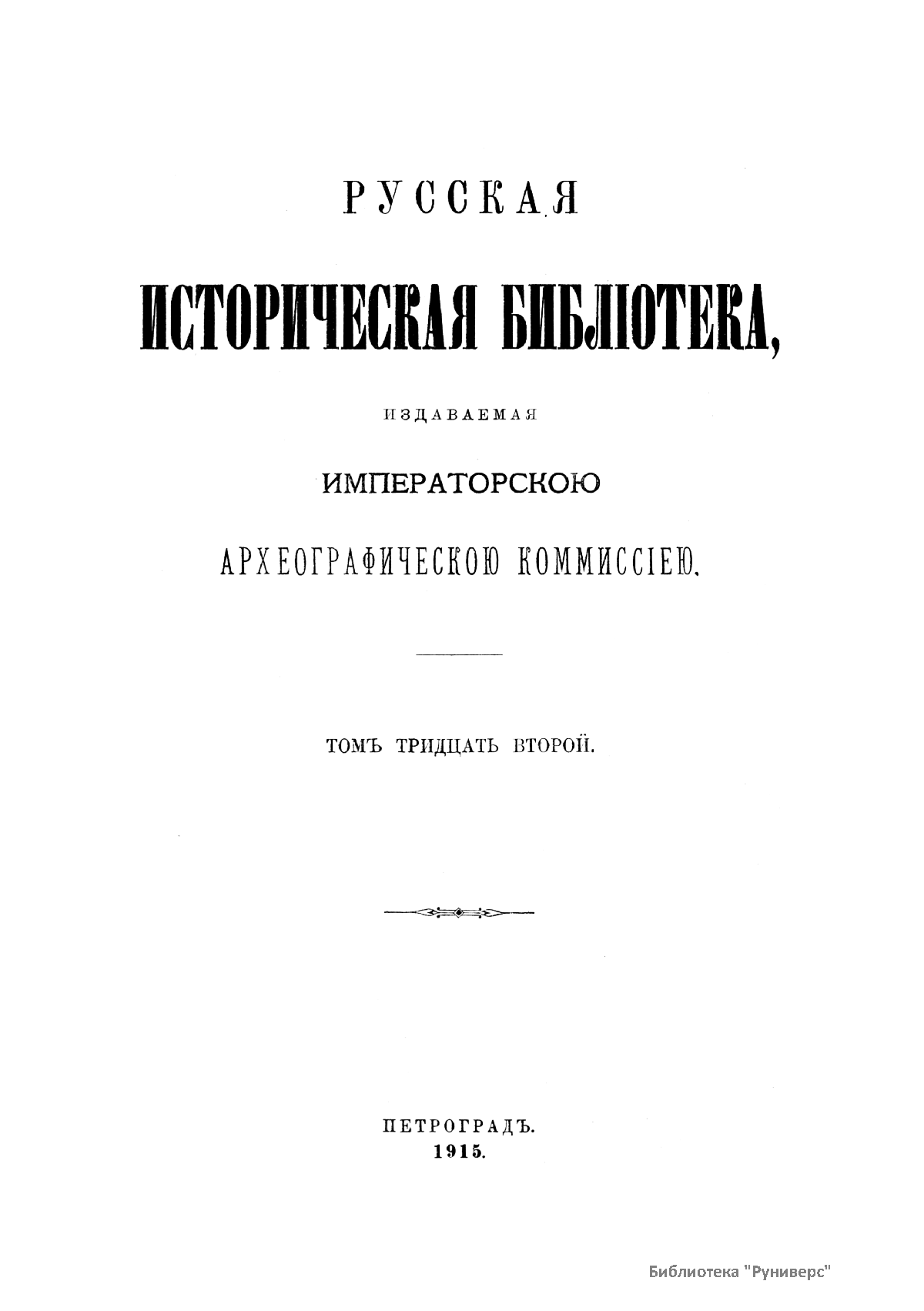 Русская историческая библиотека, издаваемая Археографической комиссией. Том тридцать второй