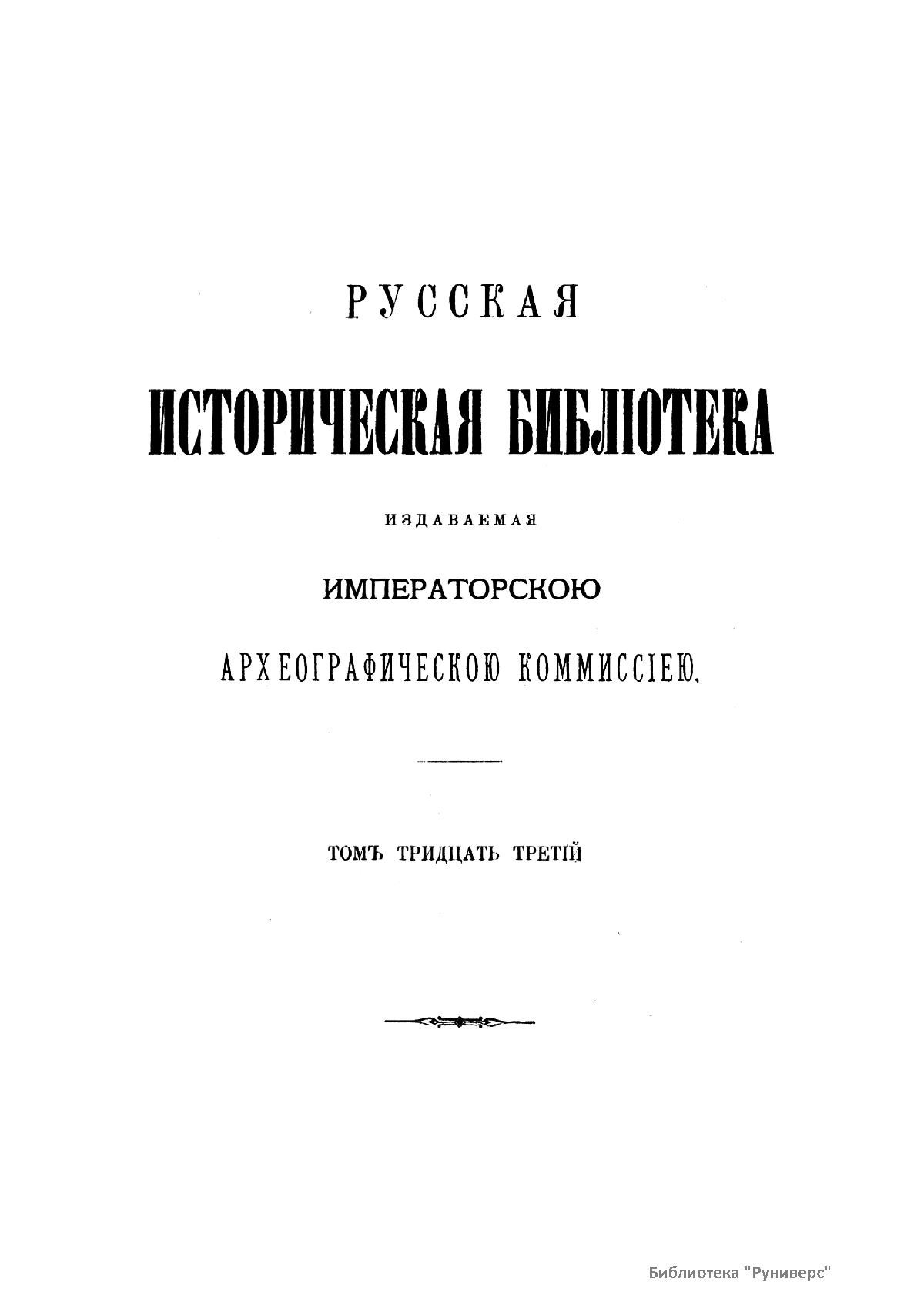 Русская историческая библiотека, издаваемая Археографическою комиссiею. Томъ тридцать третiй