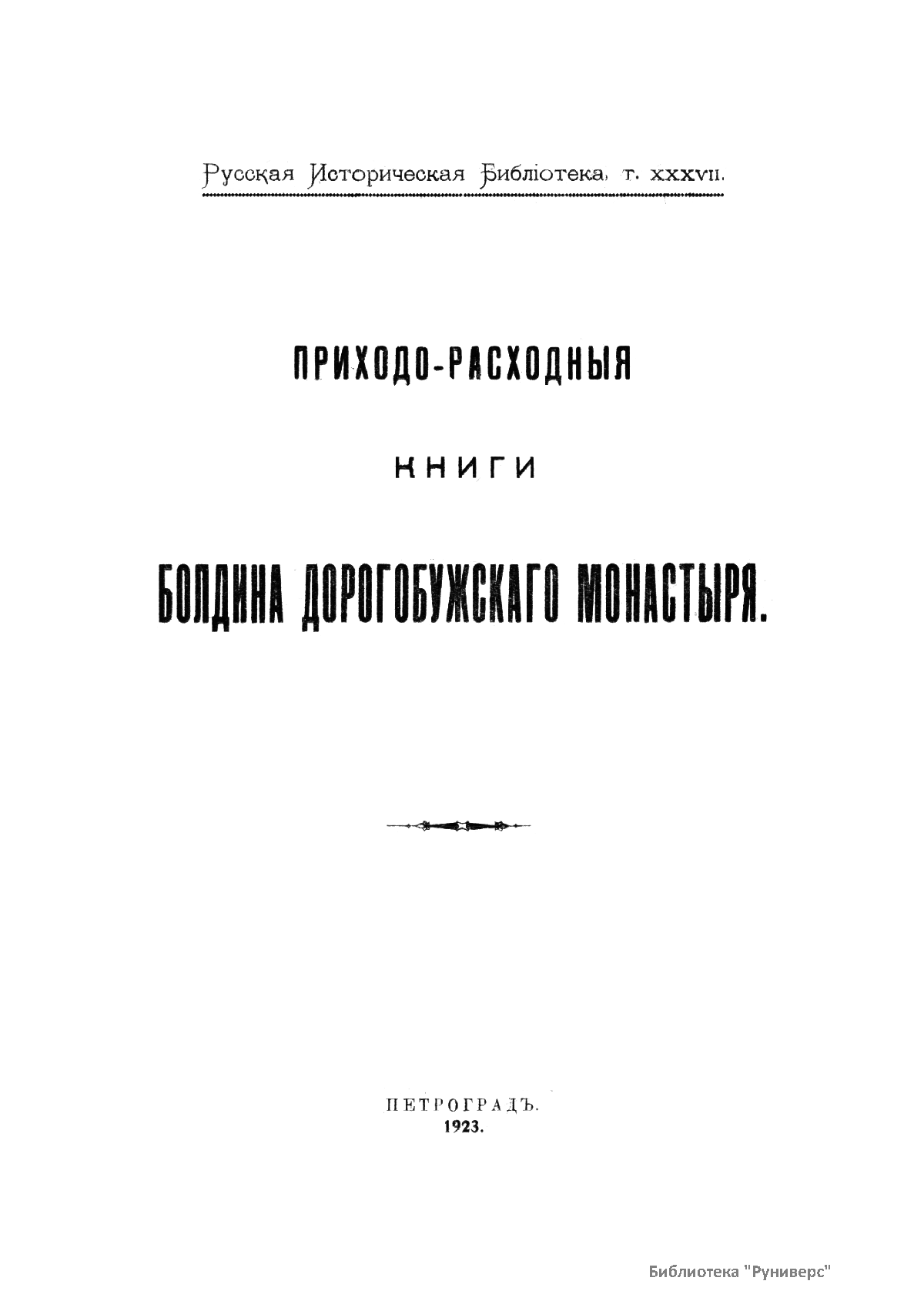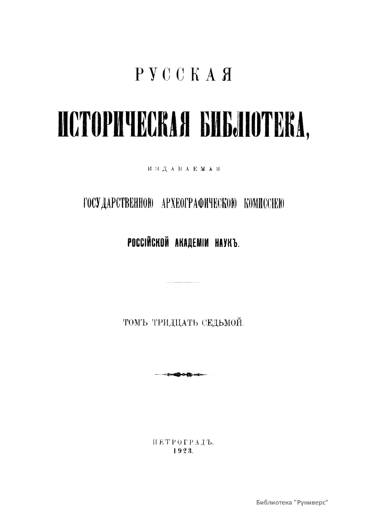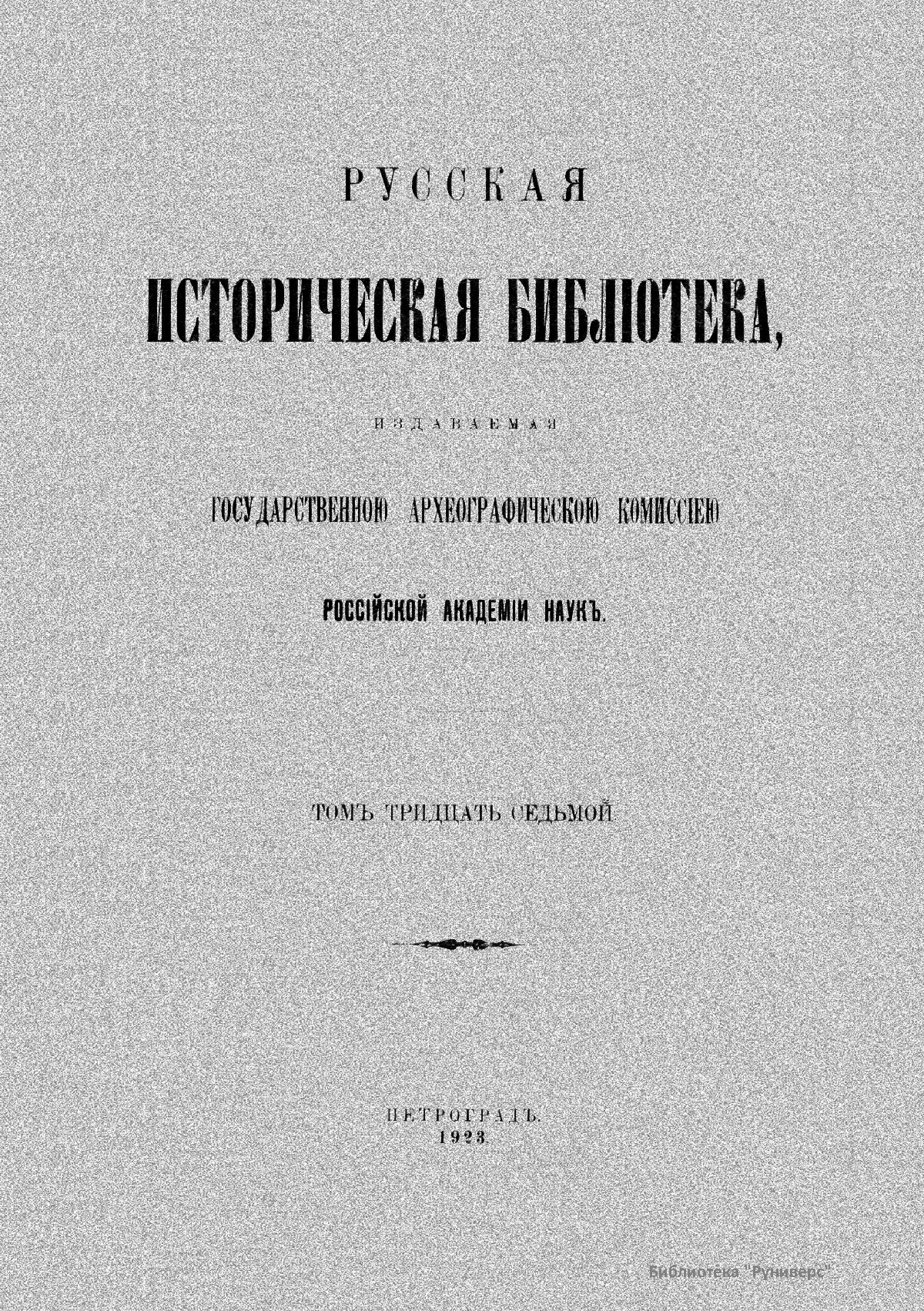 Русская историческая библиотека, издаваемая Археографической комиссией. Том тридцать седьмой