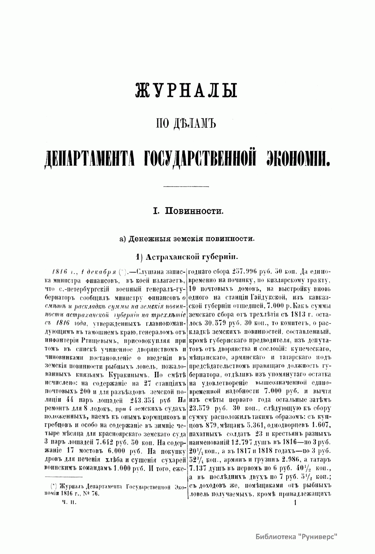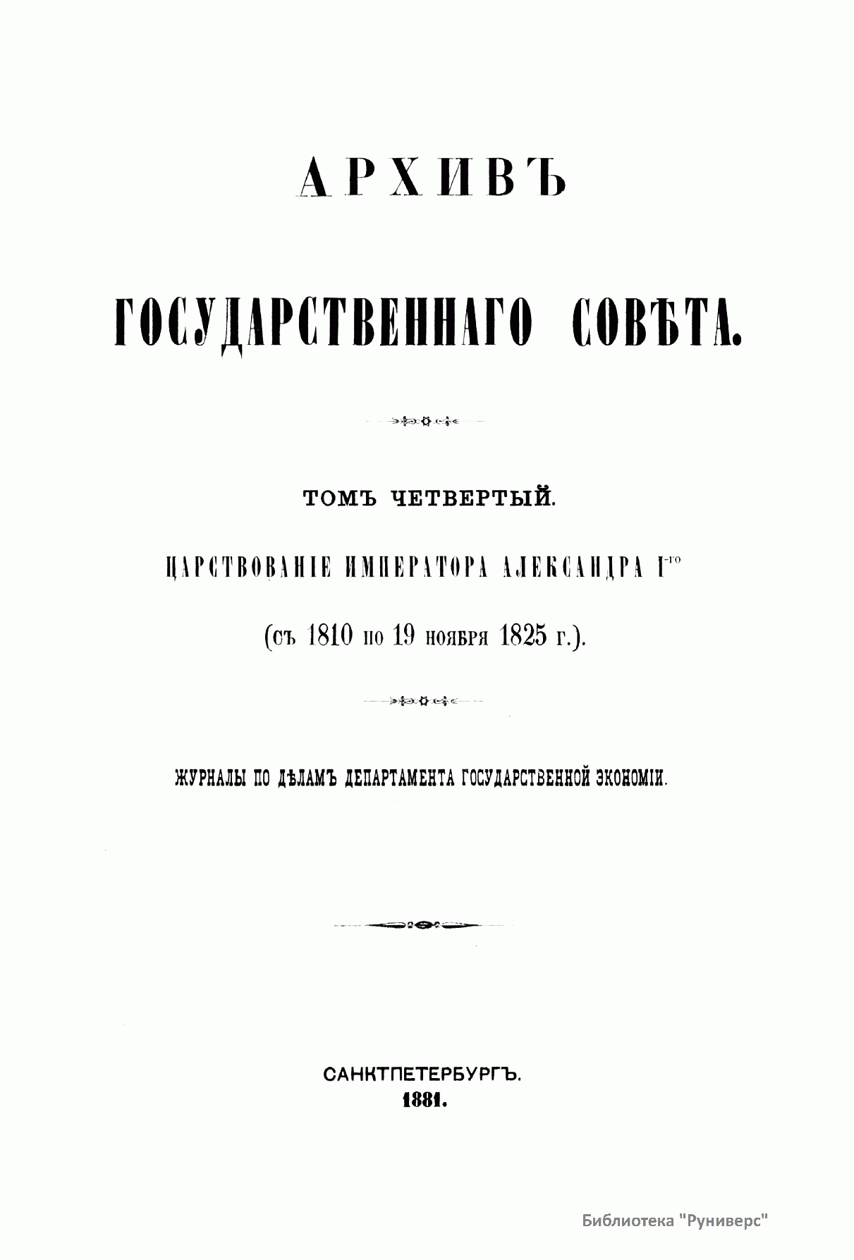 Архивъ Государственнаго совѣта. Томъ четвертый. Совѣтъ въ царствованiе императора Александра I. С 1810 по 19 ноября 1825 г. Журналы по дѣламъ департамента государственной экономiи. Часть вторая