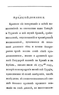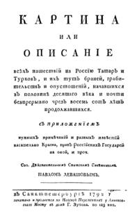 Картина или описание всѣхъ нашествiй на Россiю Татаръ и Турковъ, и ихъ тутъ браней, грабительствъ и опустошенiй, начавшихся въ половинѣ десятого вѣка и почти безпрерывно чрезъ восемь сотъ лѣтъ продолжавшихся