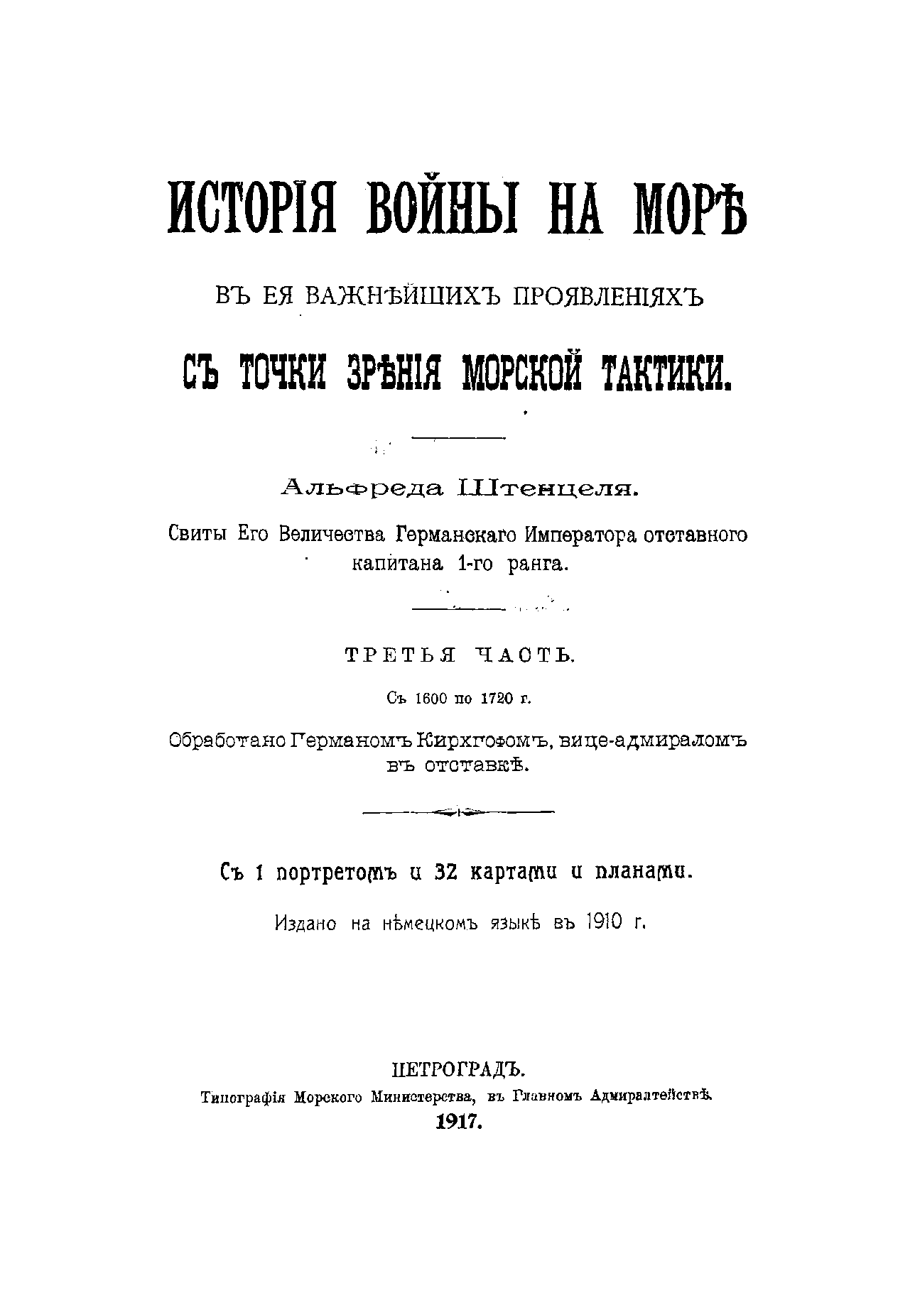 Классический фундаментальный 5-ти томный труд германского военного историка адмирала Альфреда Штенцеля, посвященный истории вооруженной борьбы на море, охватывающий огромный период от древности до середины XIX столетия, выдержал множество переизданий на разных языках в течение более 150 лет.