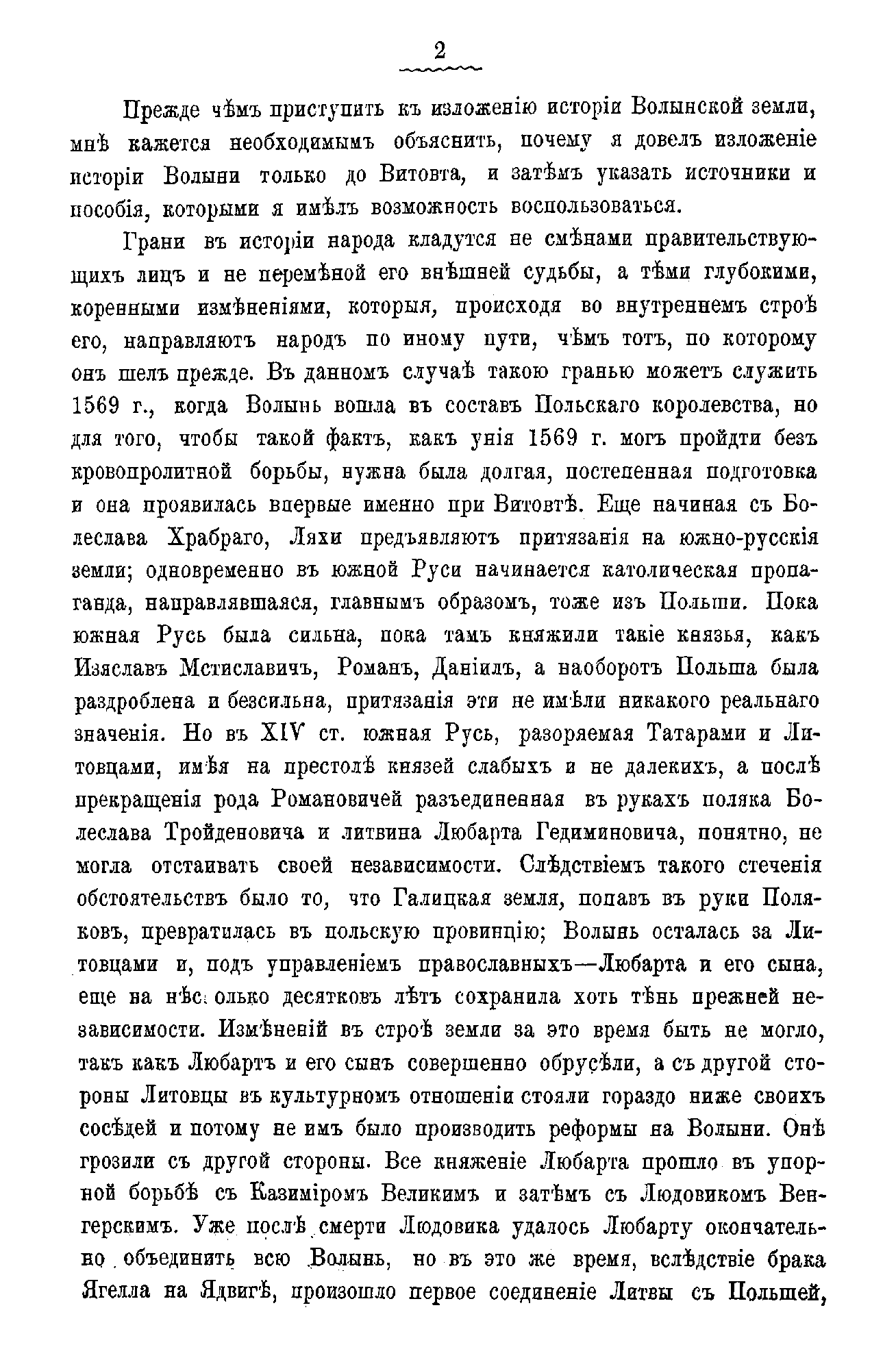 Автор считает, что «грани в истории народа кладутся не сменами правительствующих лиц и не переменой его внешней судьбы», а теми коренными изменениями, которые происходят в его внутреннем строе и направляют народ по иному пути, чем прежний. Еще начиная с Болеслава Храброго (967-1025) поляки предъявляют притязания на южнорусские земли, одновременно начинается католическое влияние. Но пока южная Русь была сильна, эти притязания не имели никакого реального значения. В XIV в. ситуация меняется.