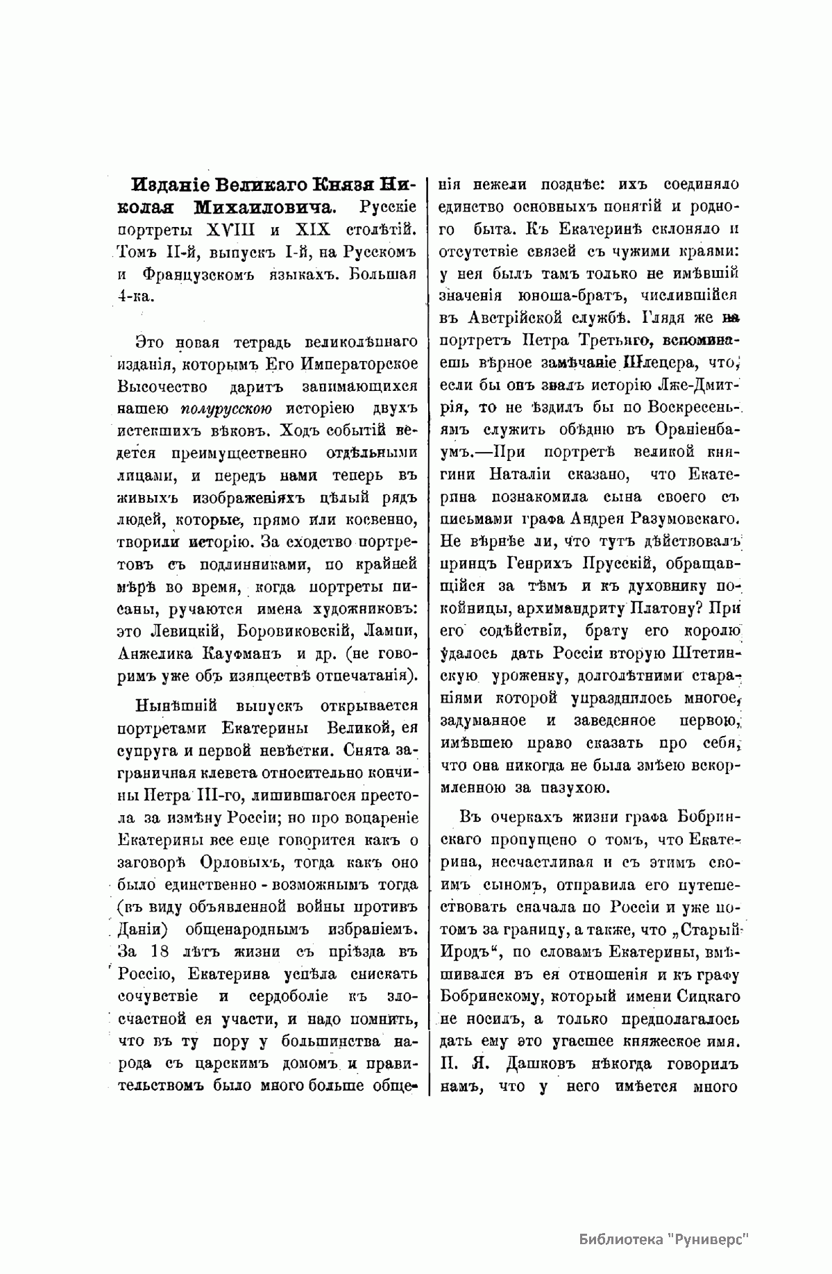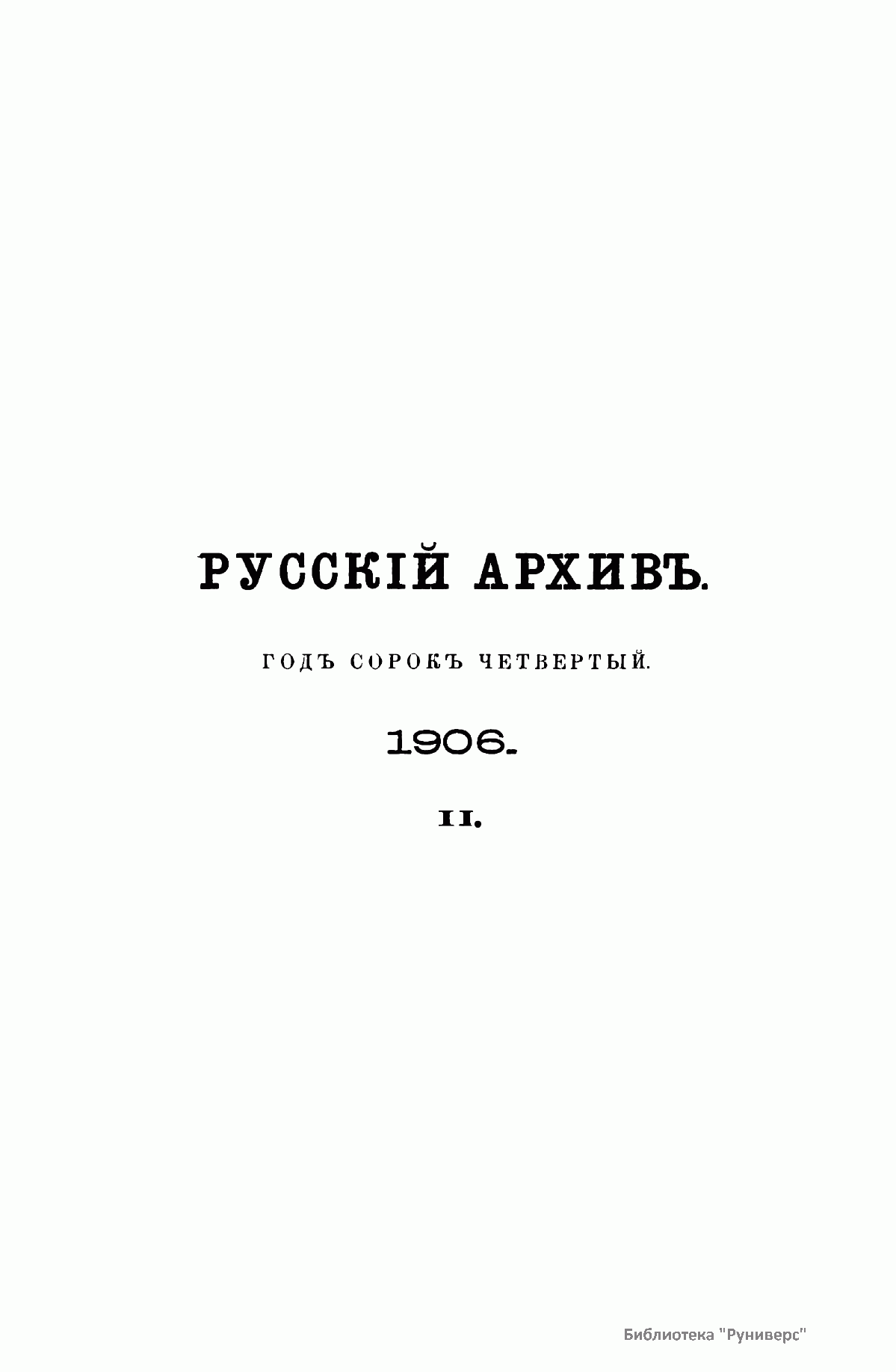 «Русский архив» — ежемесячный историко-литературный журнал, издававшийся в Москве с 1863 по 1917 год. Создателем и продолжительные годы редактором журнала был П. И. Бартенев – историк, археограф, библиограф. Этот журнал называли «живой картиной былого», поскольку он содержал преимущественно публикации неизданных мемуарных, эпистолярных, литературно-художественных и ведомственных документальных материалов, освещавших культурную и политическую историю России в XVIII и XIX вв. По числу опубликованных источников «Русский архив» стоит на первом месте среди русских исторических журналов.