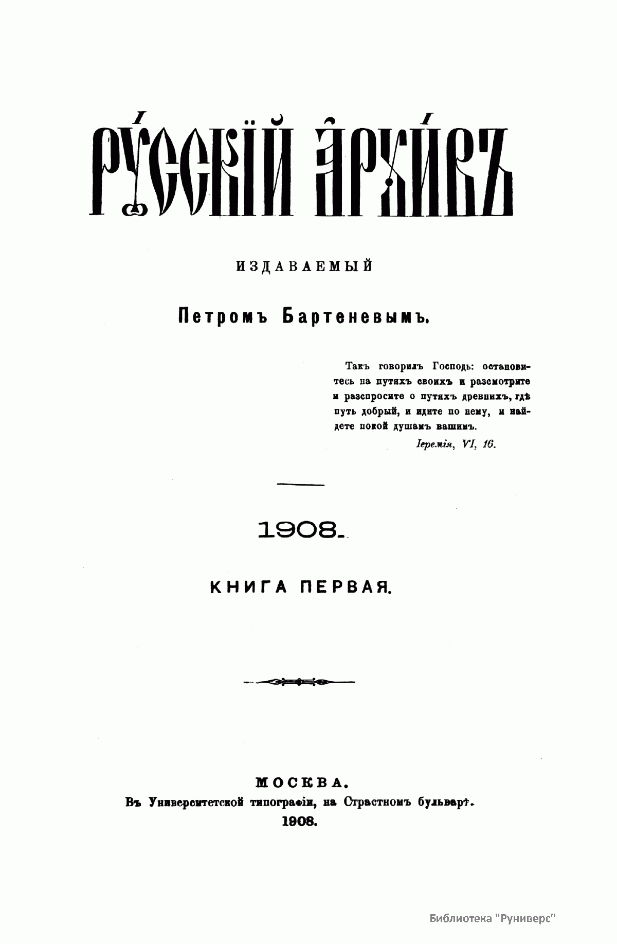 Русский архив. Историко-литературный сборник. 1908. Выпуски 1-4