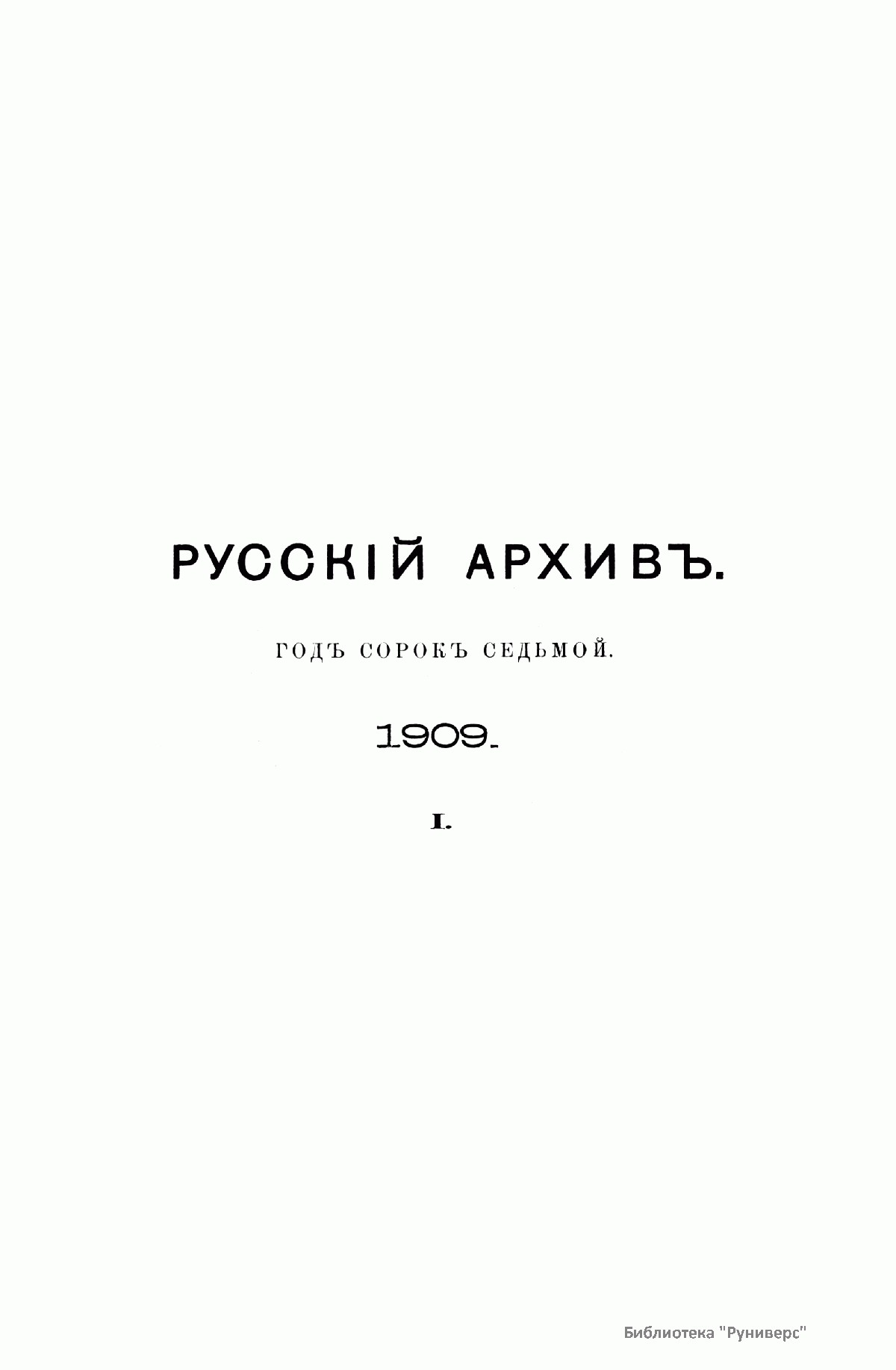 Русскiй архивъ. Историко-литературный сборникъ. 1909. Выпуски 1-4