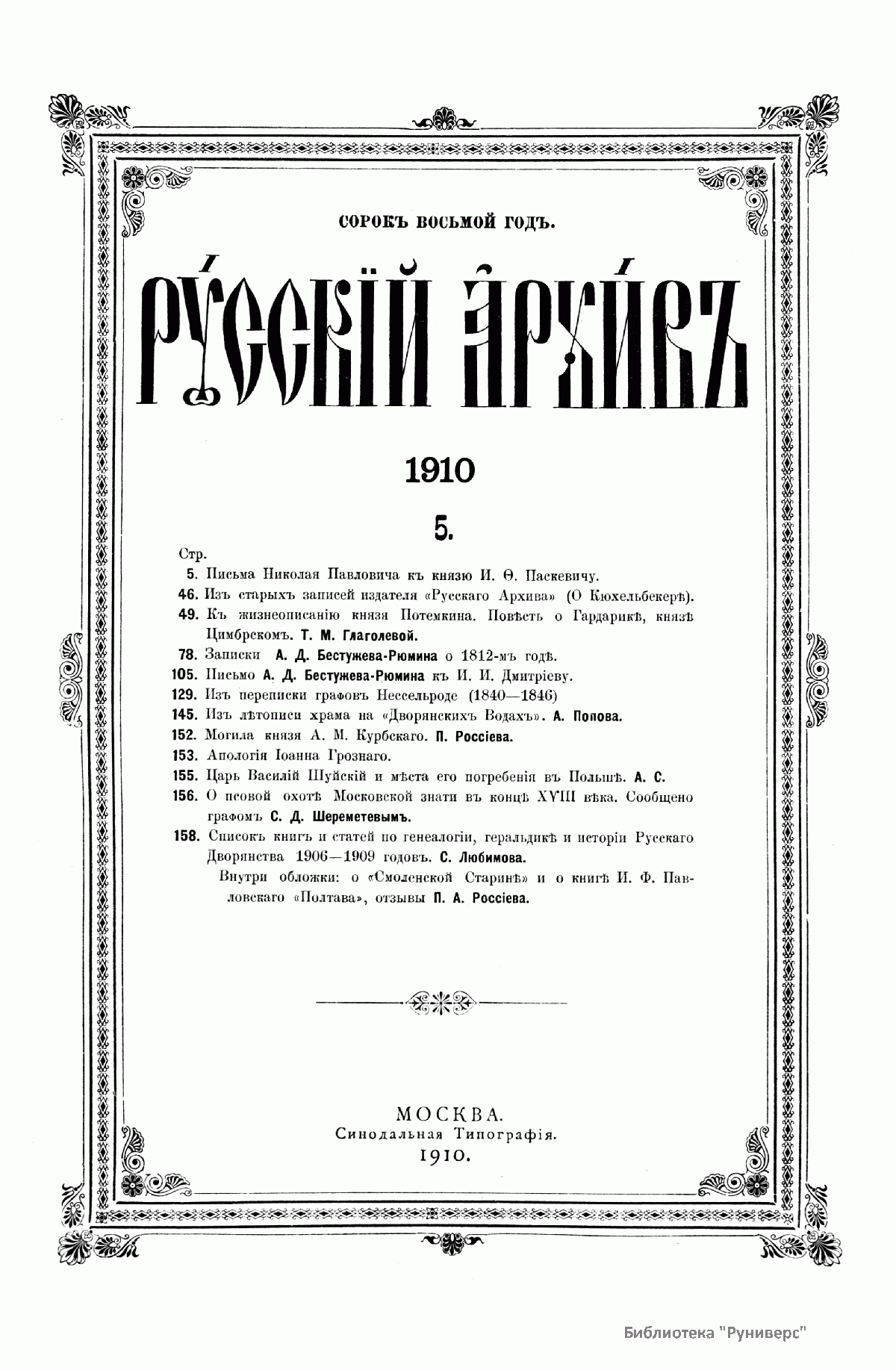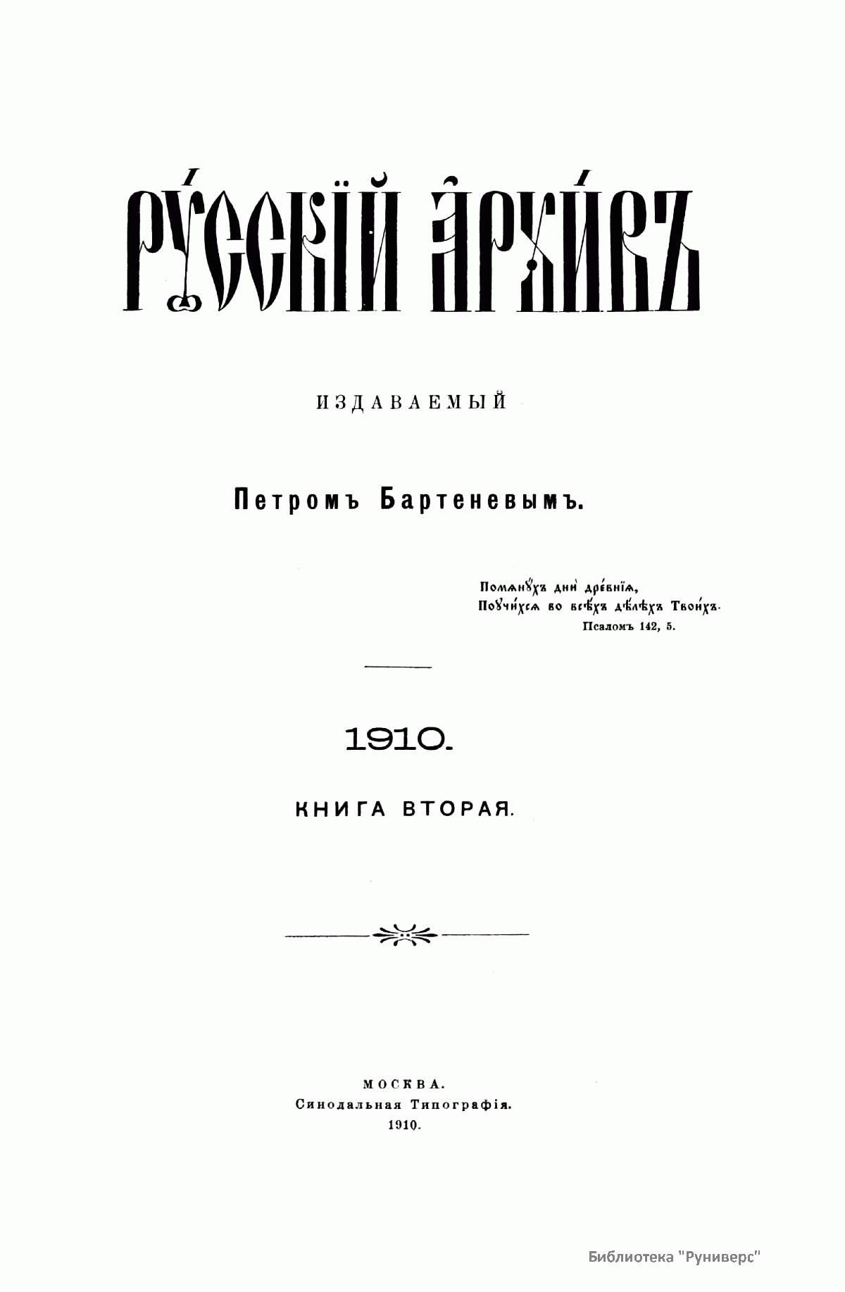 Русскiй архивъ. Историко-литературный сборникъ. 1910. Выпуски 5-8