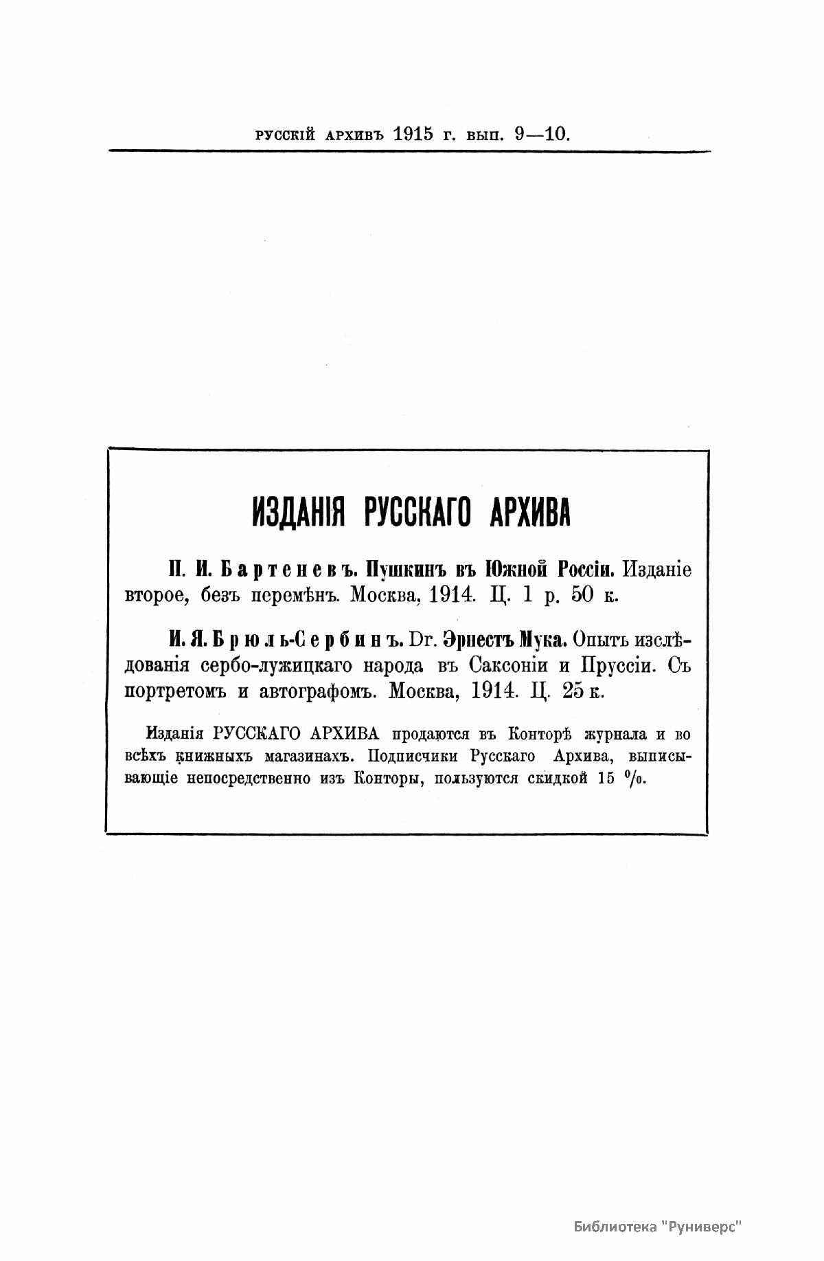 Русский архив. Историко-литературный сборник. 1915. Выпуски 9-12