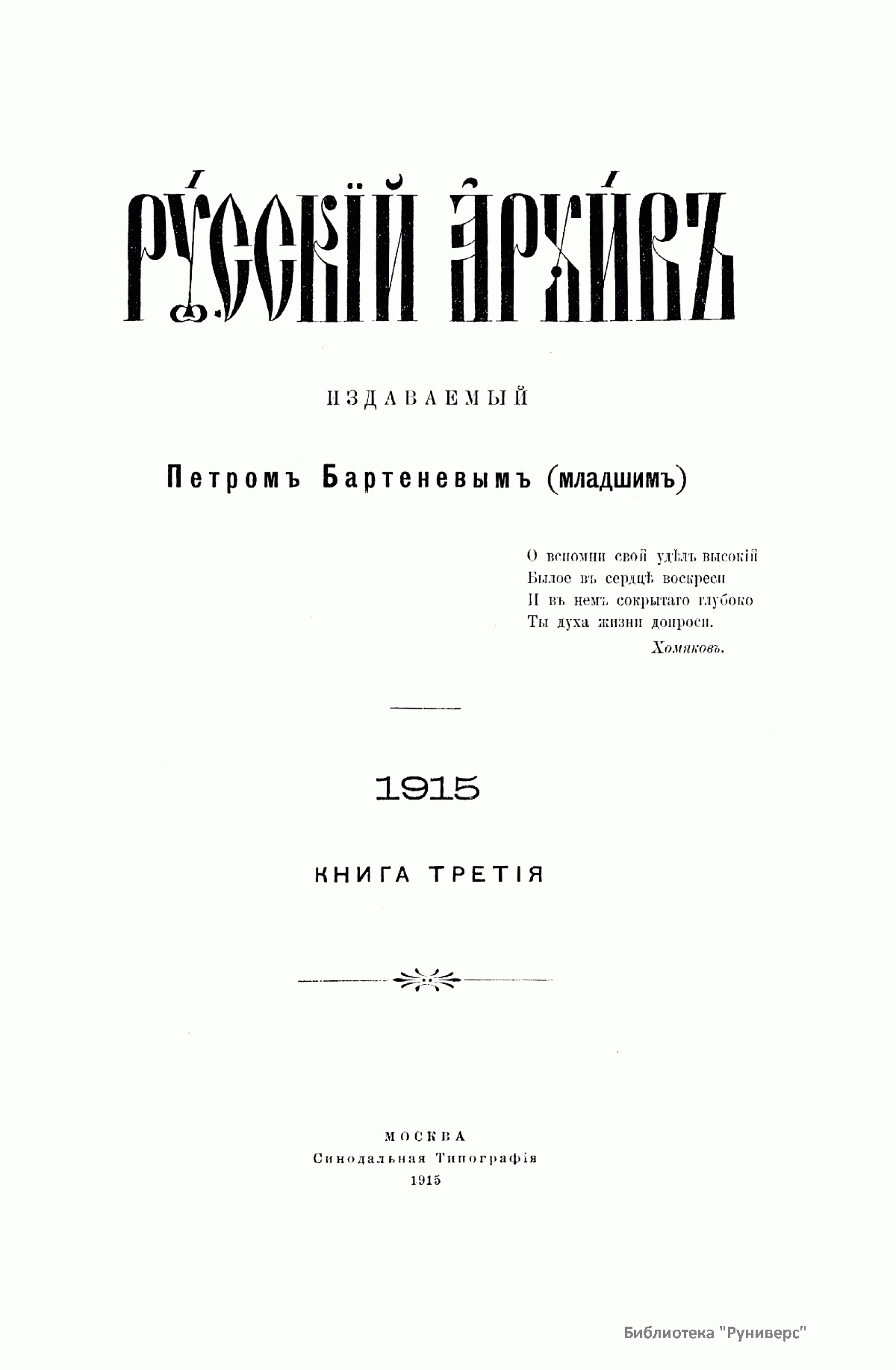 Русскiй архивъ. Историко-литературный сборникъ. 1915. Выпуски 9-12