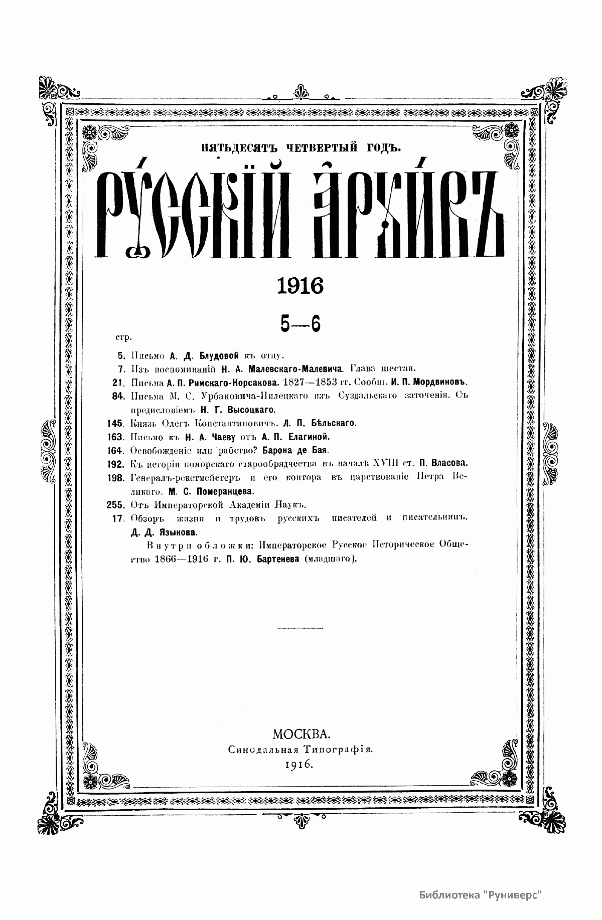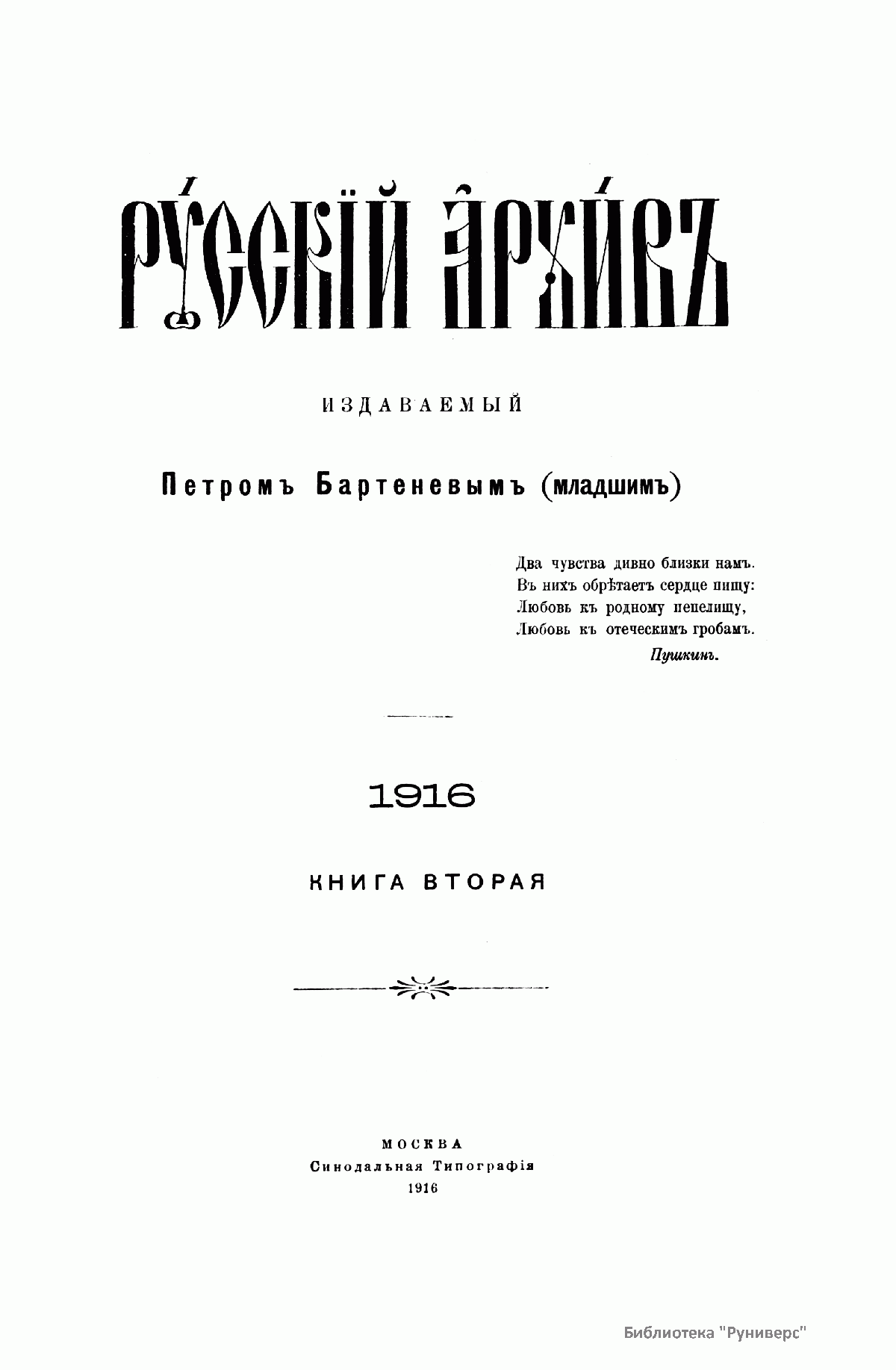 Русскiй архивъ. Историко-литературный сборникъ. 1916. Выпуски 5-12