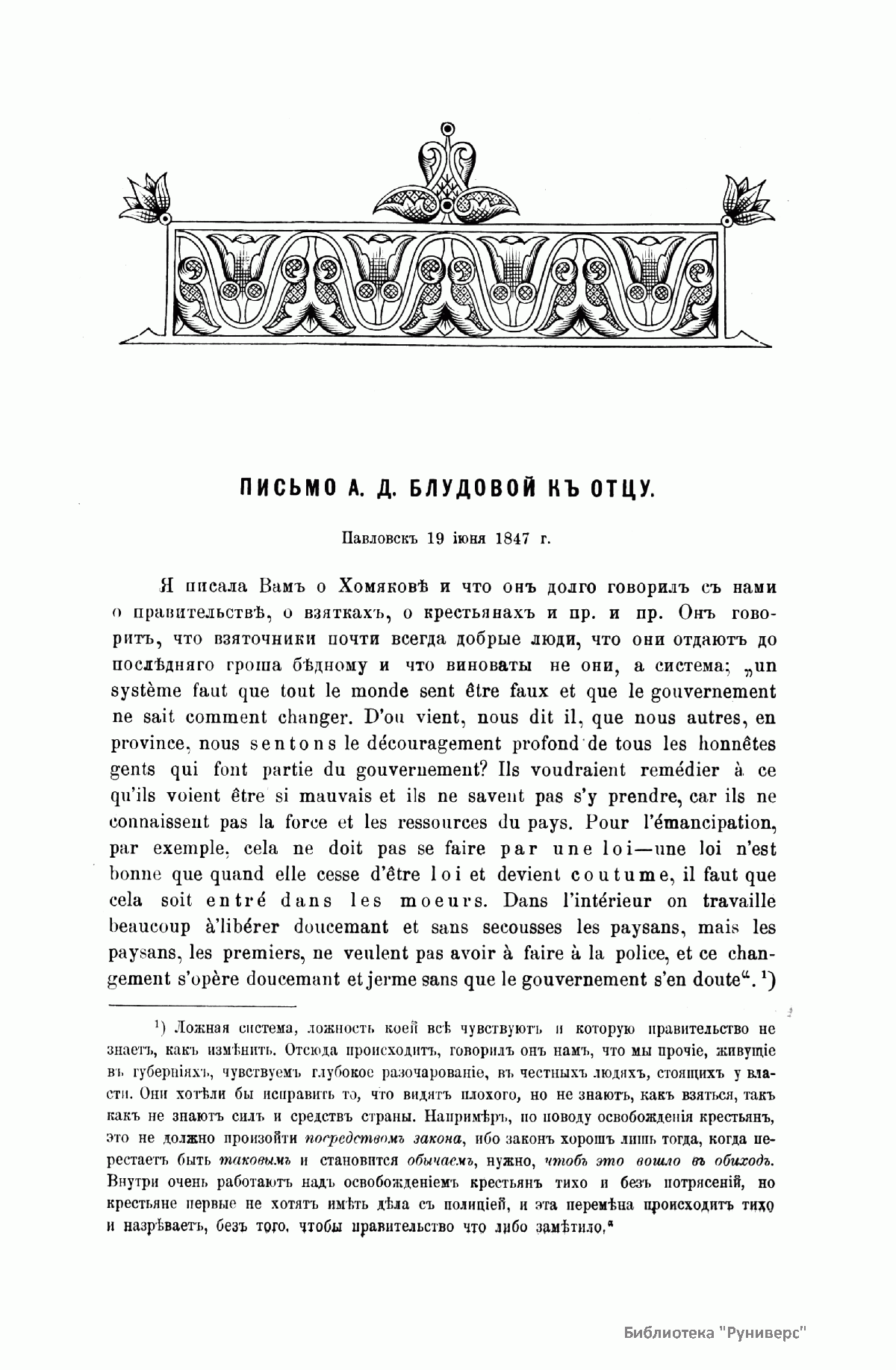«Русский архив» — ежемесячный историко-литературный журнал, издававшийся в Москве с 1863 по 1917 год. Создателем и продолжительные годы редактором журнала был П. И. Бартенев – историк, археограф, библиограф. Этот журнал называли «живой картиной былого», поскольку он содержал преимущественно публикации неизданных мемуарных, эпистолярных, литературно-художественных и ведомственных документальных материалов, освещавших культурную и политическую историю России в XVIII и XIX вв. По числу опубликованных источников «Русский архив» стоит на первом месте среди русских исторических журналов.