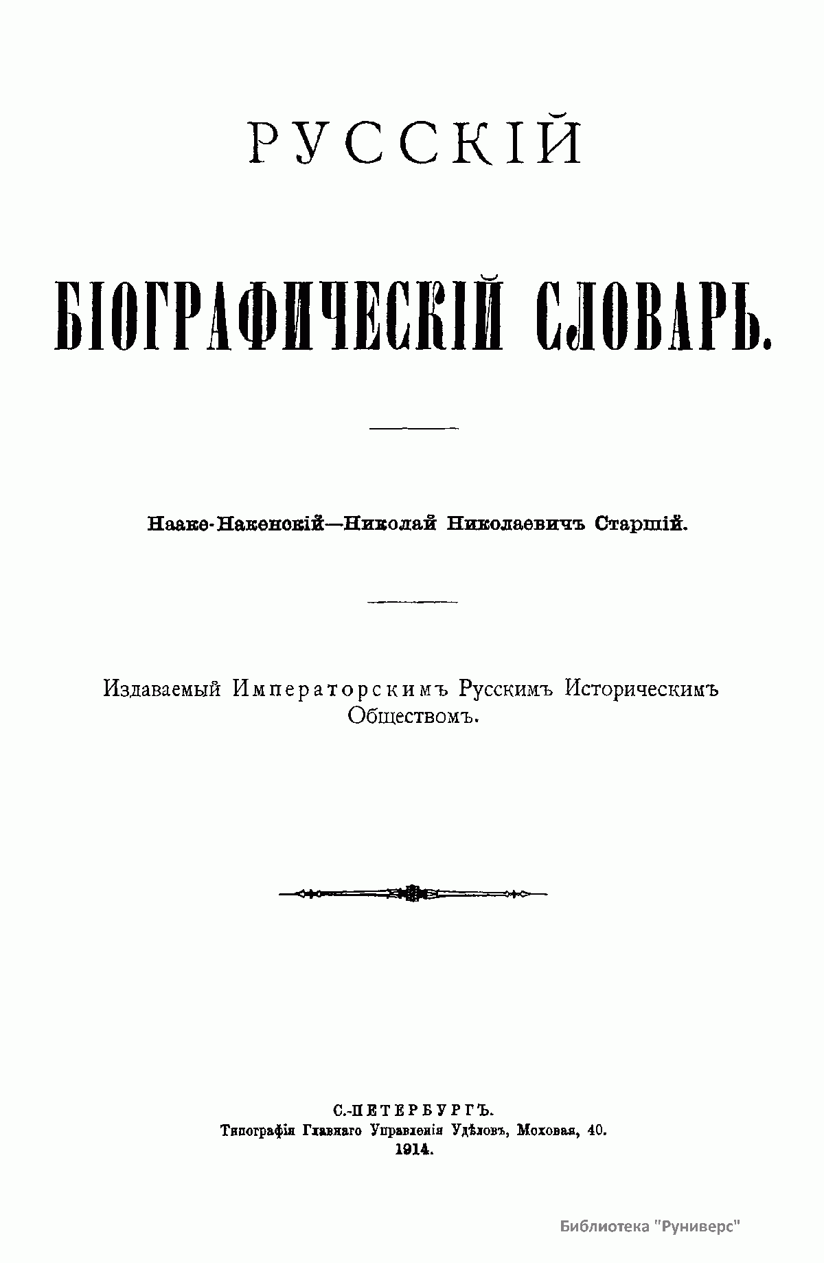 Русскiй бiографическiй словарь. Томъ XI. Нааке-Накенскiй - Николай Николаевичъ Старшiй