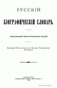 Русский биографический словарь (25 томов), в состав которого вошли имена и биографии виднейших деятелей государства, науки, просвещения и церковных деятелей, издавался Русским историческим обществом с 1896 по 1918 год. Русское историческое общество было основано в Санкт-Петербурге в 1866 году по инициативе известных отечественных историков, военных и государственных деятелей и ставило своей целью всесторонне содействовать развитию русского национального исторического просвещения. Общество пользовалось покровительством и финансовой поддержкой императорской семьи. Его деятельность носила археографический характер. Члены общества собирали исторические документы, которые публиковались в «Сборниках русского исторического общества». Всего до 1920 года (в этом году общество было закрыто) вышло 148 томов. Таким образом в научный оборот было введено большое количество документов XVIII – начала XIX века, ранее недоступных для исследователей, так как документальные материалы архивов царской России были для историков закрыты. К изданию русского биографического словаря, материалы которого до сих пор являются интереснейшим источником для исследователей, Общество приступило по инициативе императора Александра III. Тома биографического словаря выходили не в алфавитном порядке. С 1896 по 1909 год редактором словаря был руководитель Русского исторического общества, промышленник, член Сената Александр Александрович Половцев. Он выпустил 1, 2, 3, 6, 8, 12, 13, 14, 15, 18, 19, 21 и 22-й тома, поэтому этот словарь известен еще как «словарь Половцева».