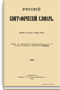 Русский биографический словарь (25 томов), в состав которого вошли имена и биографии виднейших деятелей государства, науки, просвещения и церковных деятелей, издавался Русским историческим обществом с 1896 по 1918 год. Русское историческое общество было основано в Санкт-Петербурге в 1866 году по инициативе известных отечественных историков, военных и государственных деятелей и ставило своей целью всесторонне содействовать развитию русского национального исторического просвещения. Общество пользовалось покровительством и финансовой поддержкой императорской семьи. Его деятельность носила археографический характер. Члены общества собирали исторические документы, которые публиковались в «Сборниках русского исторического общества». Всего до 1920 года (в этом году общество было закрыто) вышло 148 томов. Таким образом в научный оборот было введено большое количество документов XVIII – начала XIX века, ранее недоступных для исследователей, так как документальные материалы архивов царской России были для историков закрыты. К изданию русского биографического словаря, материалы которого до сих пор являются интереснейшим источником для исследователей, Общество приступило по инициативе императора Александра III. Тома биографического словаря выходили не в алфавитном порядке. С 1896 по 1909 год редактором словаря был руководитель Русского исторического общества, промышленник, член Сената Александр Александрович Половцев. Он выпустил 1, 2, 3, 6, 8, 12, 13, 14, 15, 18, 19, 21 и 22-й тома, поэтому этот словарь известен еще как «словарь Половцева».