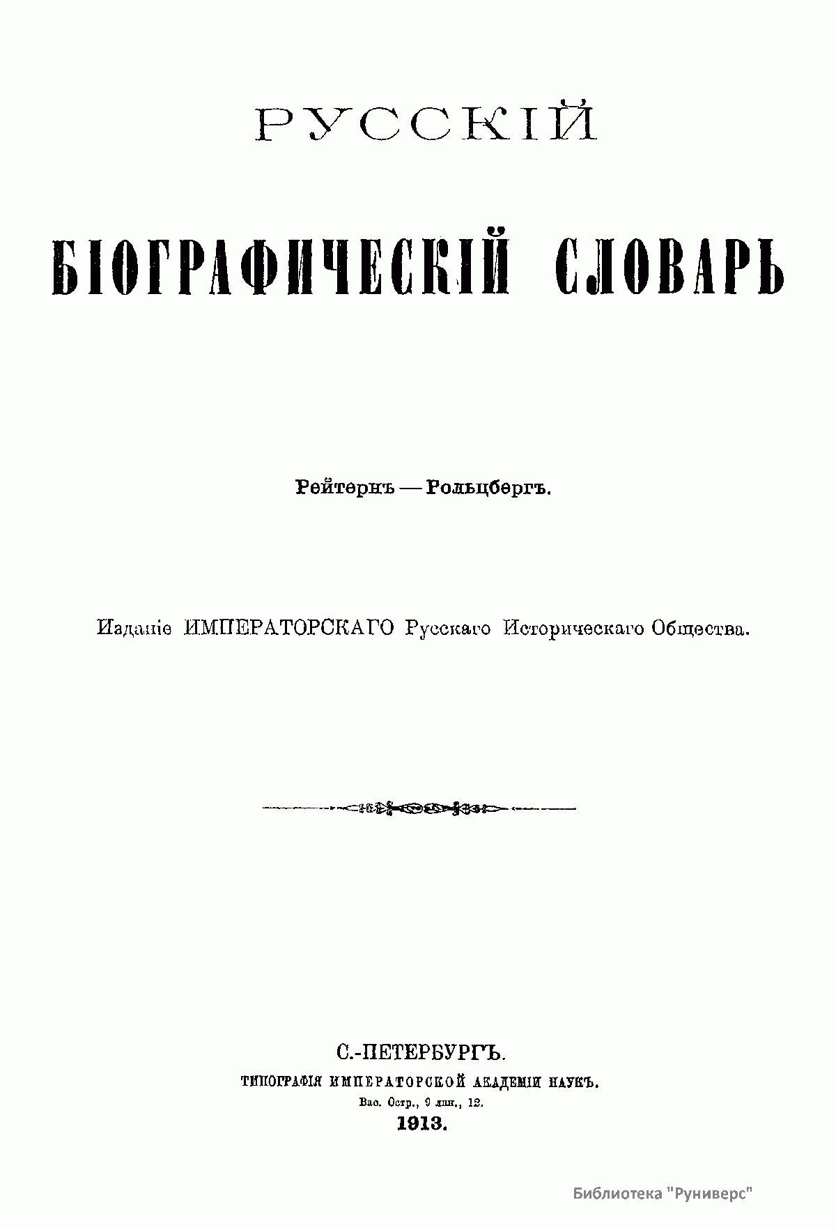 Русскiй бiографическiй словарь. Томъ XVI. Рейтернъ - Рольцбергъ