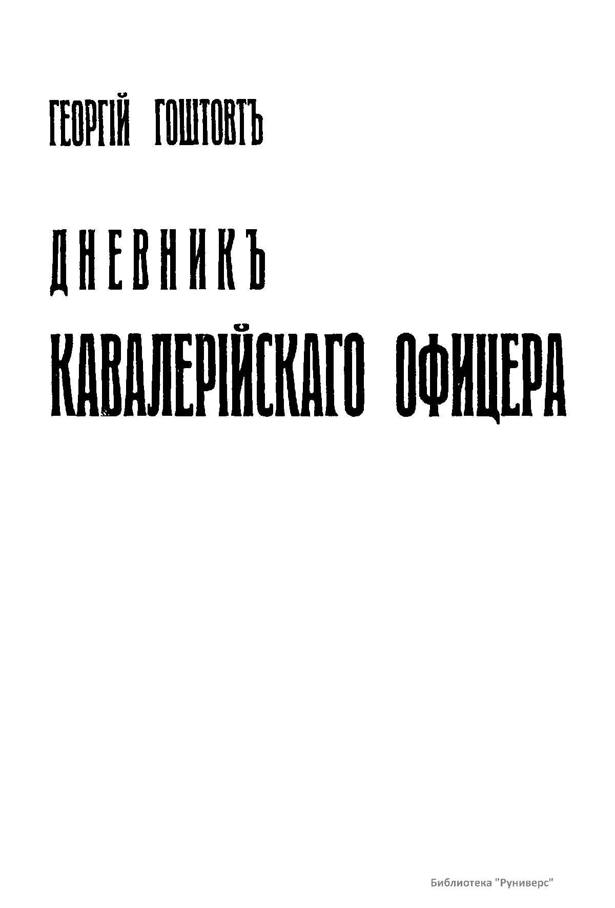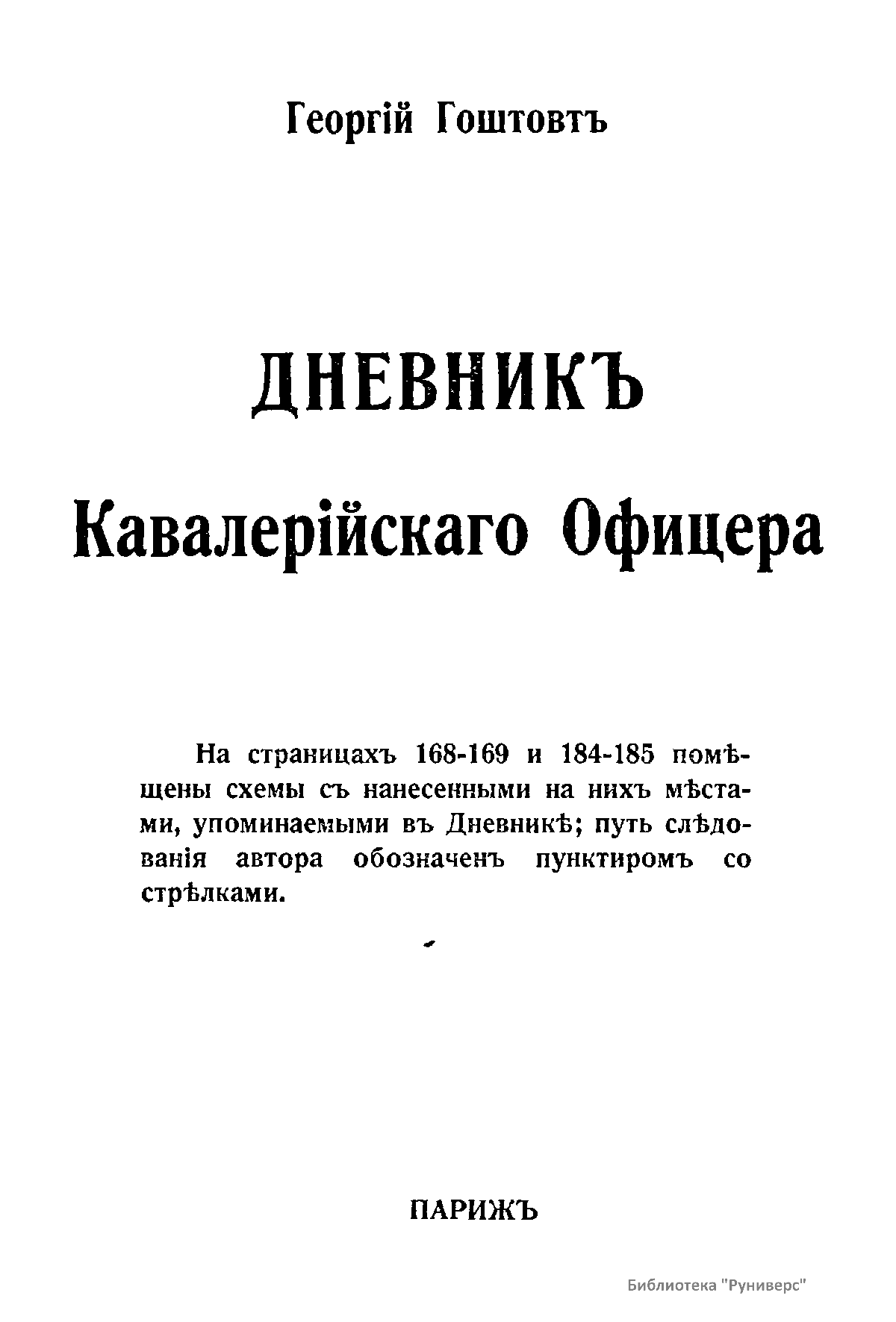 Гоштовт Георгий Адамович (1888-1953), окончил Пажеский корпус. Служил в Лейб-гвардии кирасирском полку. Участник Белого движения. С октября 1918 г. участвовал в формировании добровольческих частей в Пскове. С декабря находился в распоряжении командующего Северным корпусом генерала А.П. Родзянко. После ликвидации Северо-Западной армии в декабре 1919 г. уехал во Францию. Занимался военно-литературной деятельностью. Составитель трехтомного труда: «Кирасиры в Великую войну», «Участие в Белом Движении», «Жизнь за рубежом». Постоянный автор журнала «Часовой». В 1940-х гг. исполнял обязанности секретаря Историко-генеалогического общества. В изданном в Париже в 1931 г. «Дневнике кавалерийского офицера» Г.А. Гоштовт подробно описывает свои впечатления от участия в боях в Восточной Пруссии в августе – сентябре 1914 года.