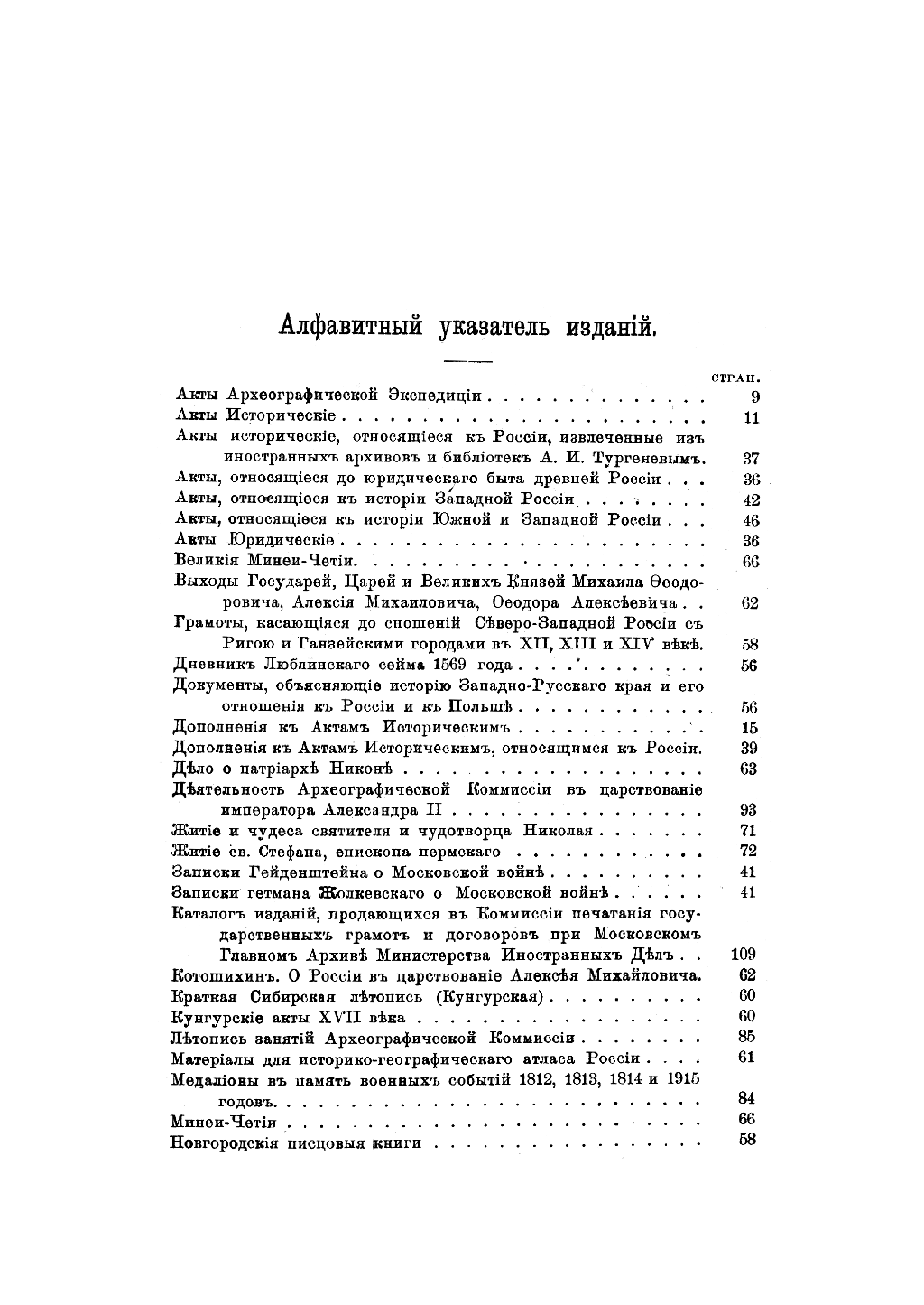 Плодами трудов Археографической комиссии стали многочисленные многотомные издания, которые включали в себя важнейшие документы по истории России. В 1918 году вышло шестое издание аннотированного каталога, наиболее полно отразившеевсе труды комиссии с 1836 года.