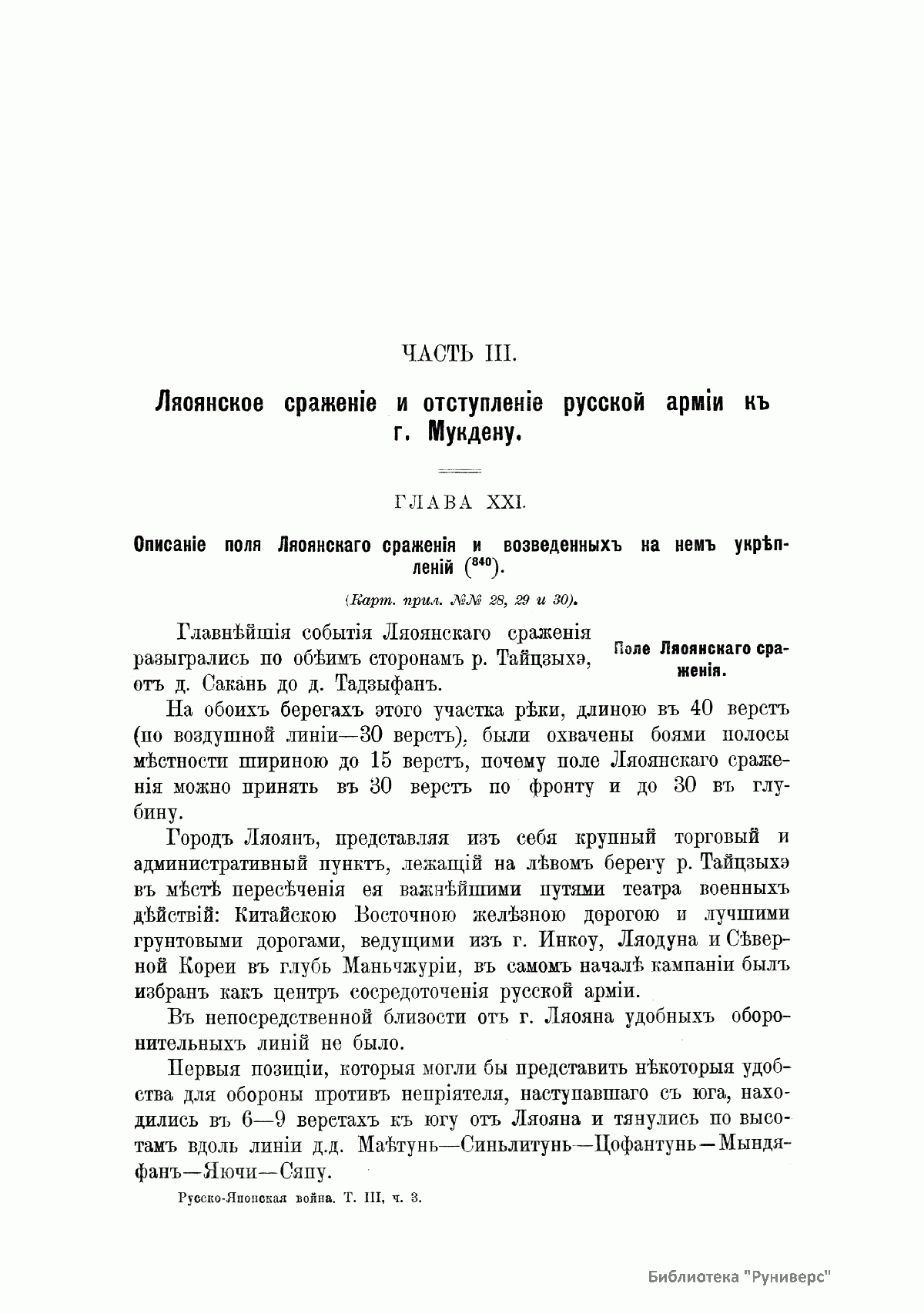 Русско-Японская война 1904-1905 гг. Томъ III. Ляоянскiй перiодъ. Часть третья. Ляоянское сраженiе и отступленiе русской армiи къ г. Мукдену