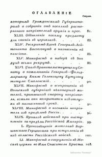 В книге опубликованы 95 высочайших манифестов, грамот, указов, рескриптов, приказов войскам и разных извещений за 1812, 1813, 1814, 1815 и 1816 годы. Перечень документов дан в начале издания. Издатели уверены в том, что данное собрание послужит для будущих историков «вернейшим источником истинных сведений и понятий» о совершившихся в эти годы «бессмертных подвигах и деяний». В этих документах «потомки увидят ясно и твердость правительства, и дух народа, и подвиги войск, протекших Европу с мужеством в сердце и правдой в устах».