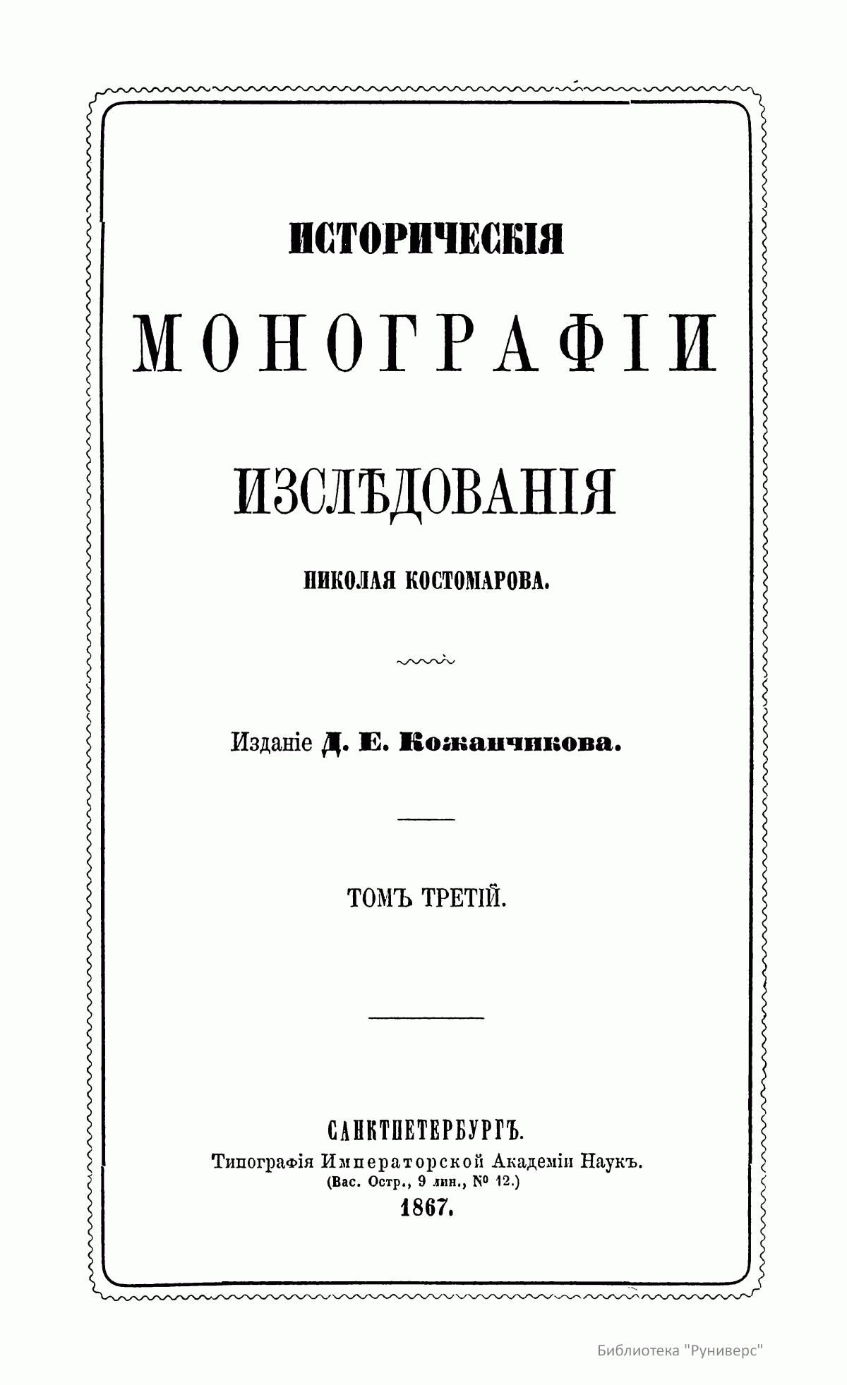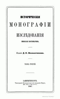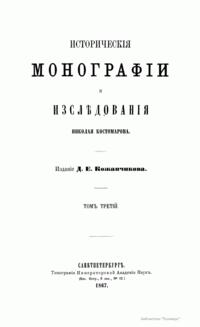 Историческiя монографiи и изслѣдованiя Николая Костомарова. Томъ третий
