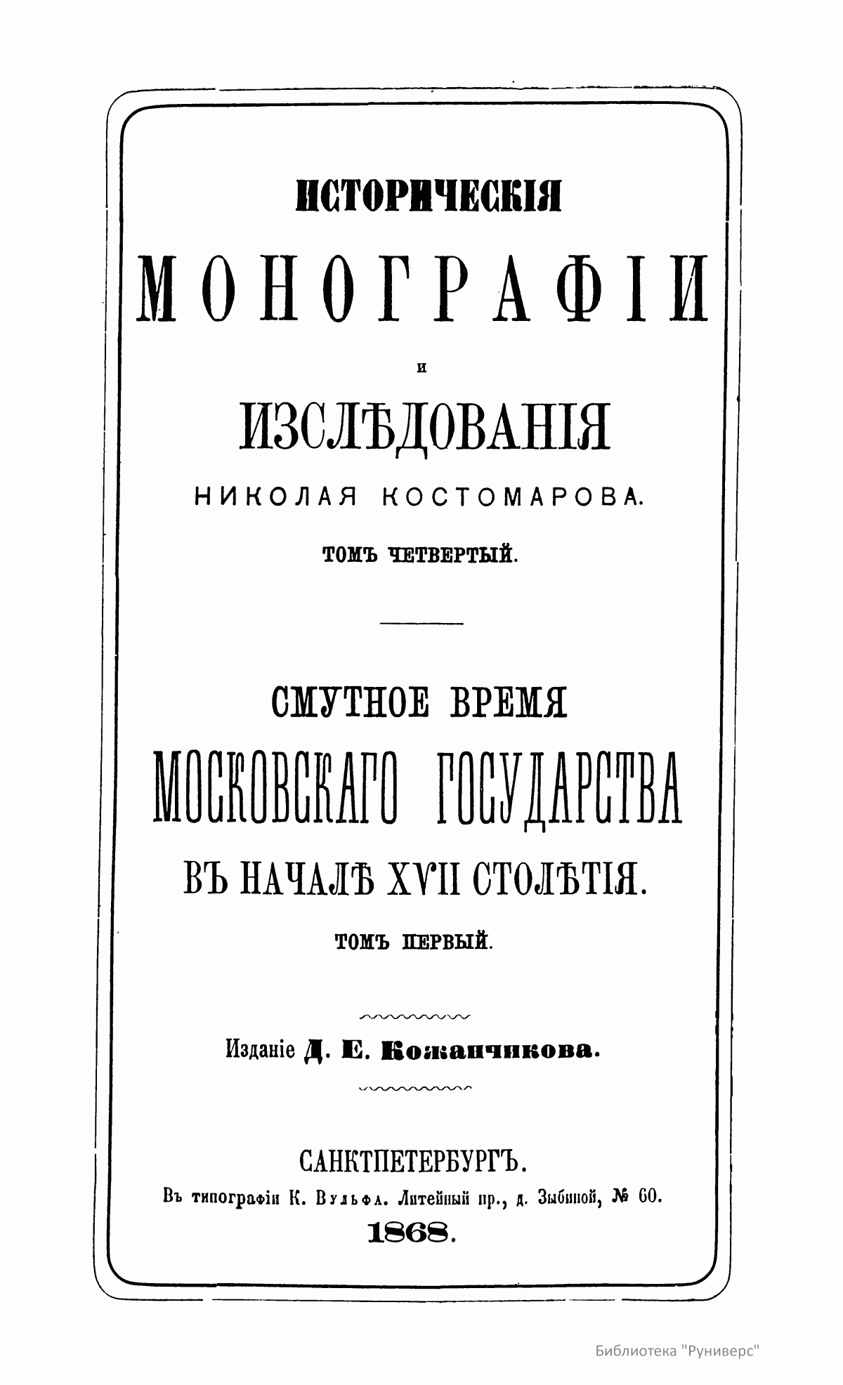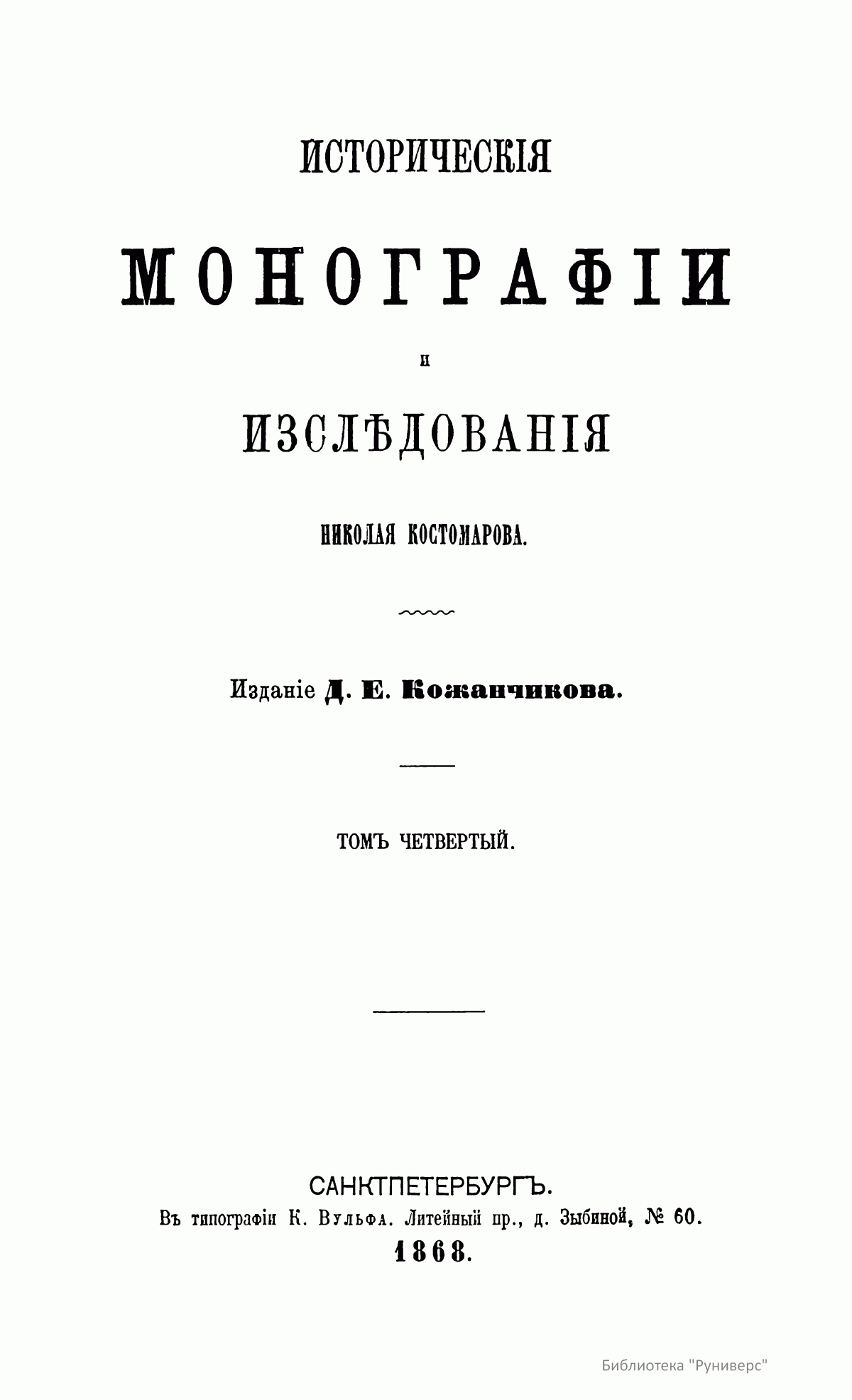 Историческiя монографiи и изслѣдованiя Николая Костомарова. Томъ четвертый