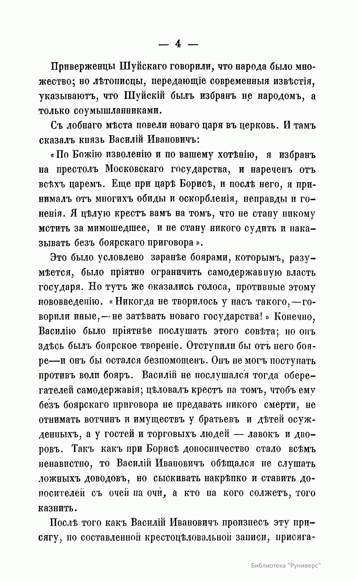 Перед читателем прижизненное издание трудов Н. И. Костомарова, в котором удачно соединялись историк-мыслитель и художник, что обеспечило ему не только одно из первых мест в ряду русских историков, но и наибольшую популярность среди читающей публики. Глубоко вдумываясь, почти вживаясь в изучаемую им старину, он воспроизводил ее в своих работах такими яркими красками, в таких выпуклых образах, что она надолго оставалась в памяти читателя. В первых трех томах и в двенадцатом томе опубликованы различные статьи. 1 – «Мысли о федеративном начале древней Руси»; «Черты народной южнорусской истории»; «Две русские народности»; «Мистическая повесть о Нифонте. Памятник русской литературы»; «Легенда о кровосмесителе»; «О значении Великого Новгорода»; «Должно ли считать Бориса Годунова основателем крепостного права?»; «Великорусские религиозные вольнодумцы в XVI веке. – Матвей Башкин и его соучастник Феодосий Косой»; «Иван Сусанин. Историческое исследование». 2 – «Иван Свирговский, украинский казацкий гетман XVI века»; «Гетманство Выговского»; «Бунт Стеньки Разина»; «По поводу мыслей светского человека, о книге «Сельское духовенство». 3 – «Куликовская битва»; «Ливонская война»; «Южная Русь в конце XVI века»; «Литовская народная поэзия»; «Об отношении русской истории к географии и этнографии». 12 – «Начало единодержавия в Древней Руси»; «Гетманство Юрия Хмельницкого»; «Церковно-историческая критика в XVII веке»; «История раскола у раскольников»; «Воспоминания о молоканах». Четвертый, пятый и шестой тома посвящены Смутному времени московского государства в начале XVII столетия. Седьмой и восьмой – истории Новгорода, Пскова и Вятки во время удельно-вечевого уклада. Девятый, десятый и одиннадцатый – Богдану Хмельницкому.