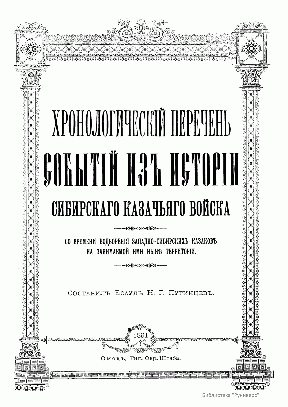 Хронологическiй перечень событiй изъ исторiи Сибирскаго казачьяго войска