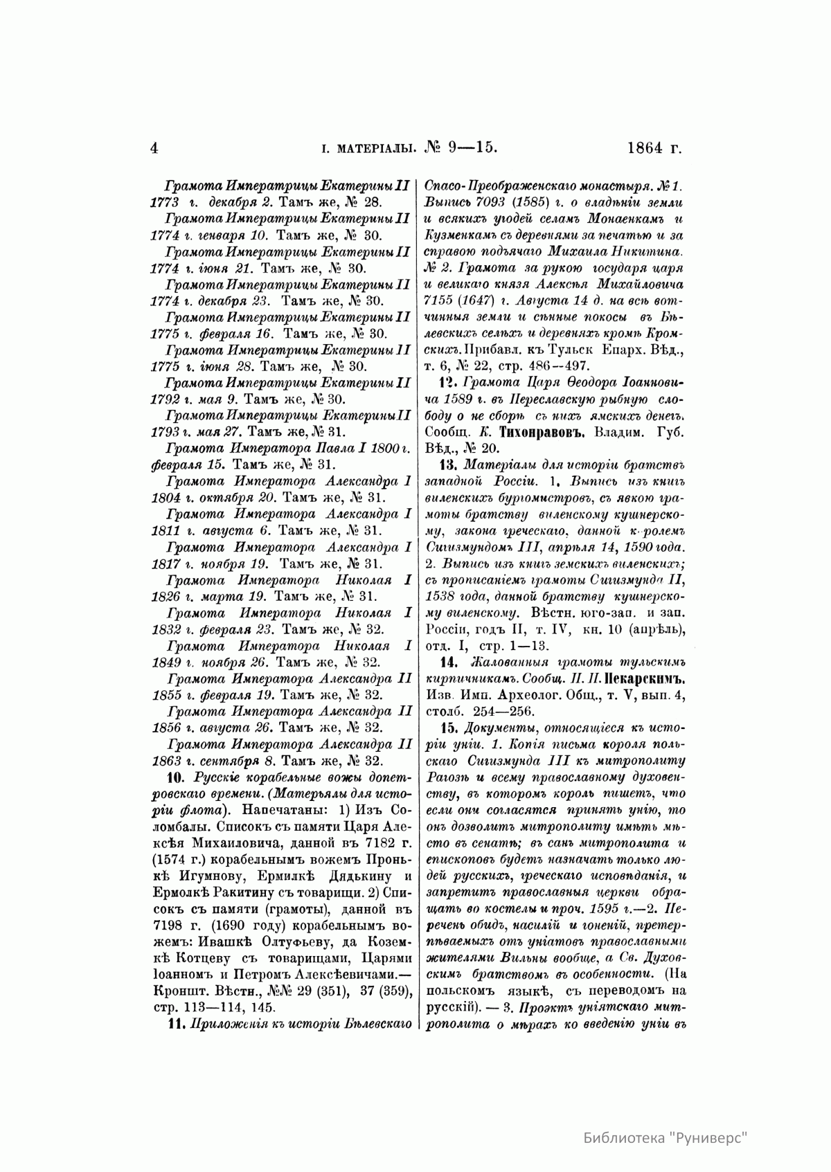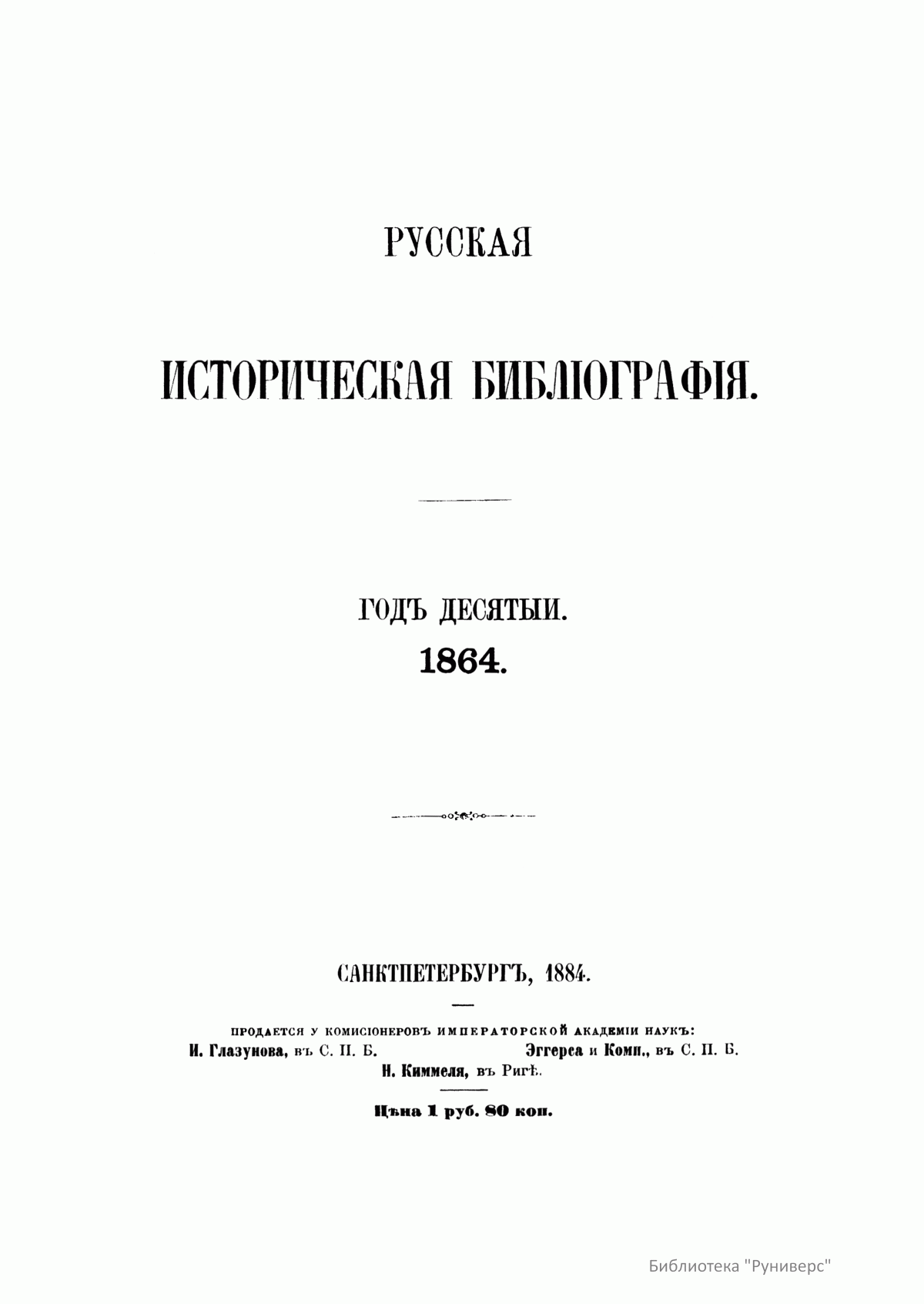 Русская историческая библиографiя. Годъ десятый. 1864