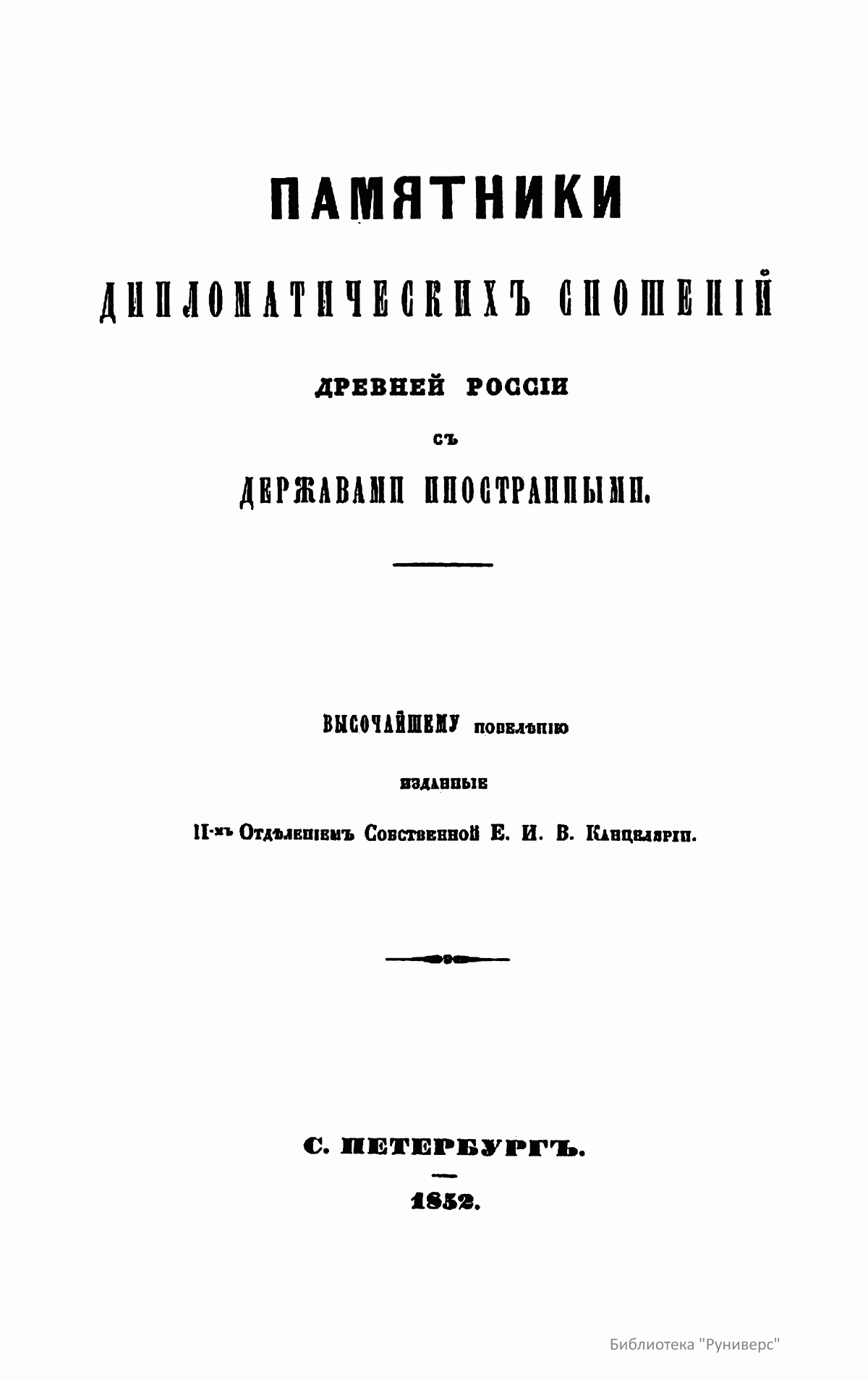 Памятники дипломатическихъ сношенiй древней Россiи съ державами иностранными