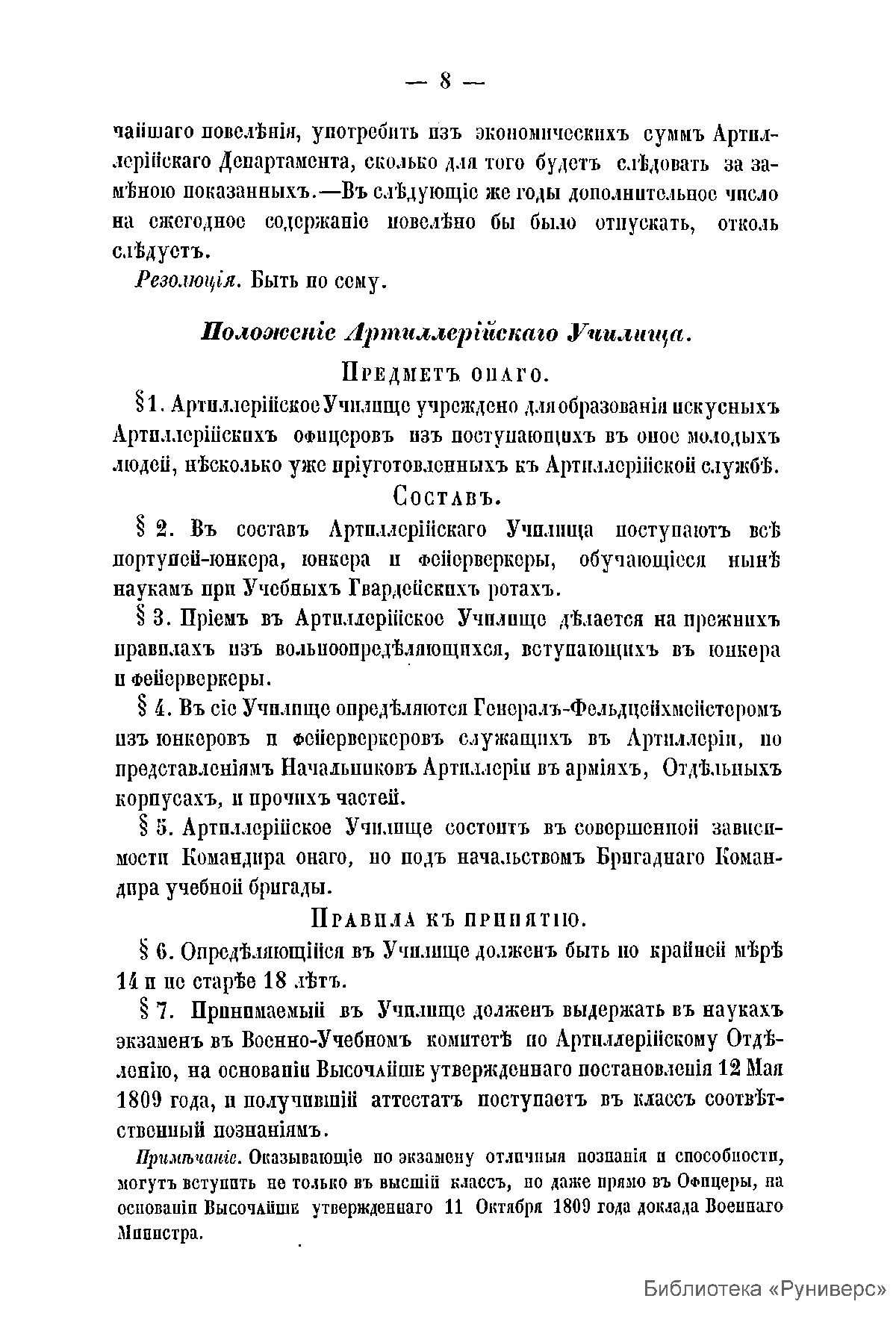 Исторический очерк образования и развития Артиллерийского училища 1820-1870