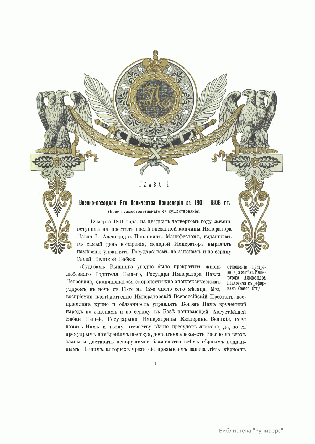 Столѣтiе военнаго министерства. 1802-1902. Императорская главная квартира. Исторiя государевой свиты. Царствованiе Императора Александра I. Книга 1