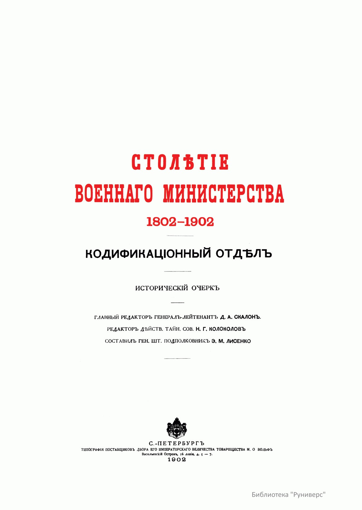 Столетие военного министерства. 1802-1902. Кодификационный отдел