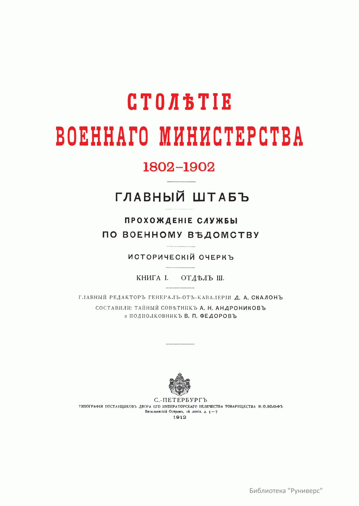 Столетие военного министерства. 1802-1902. Главный штаб. Прохождение службы по военному ведомству. Исторический очерк